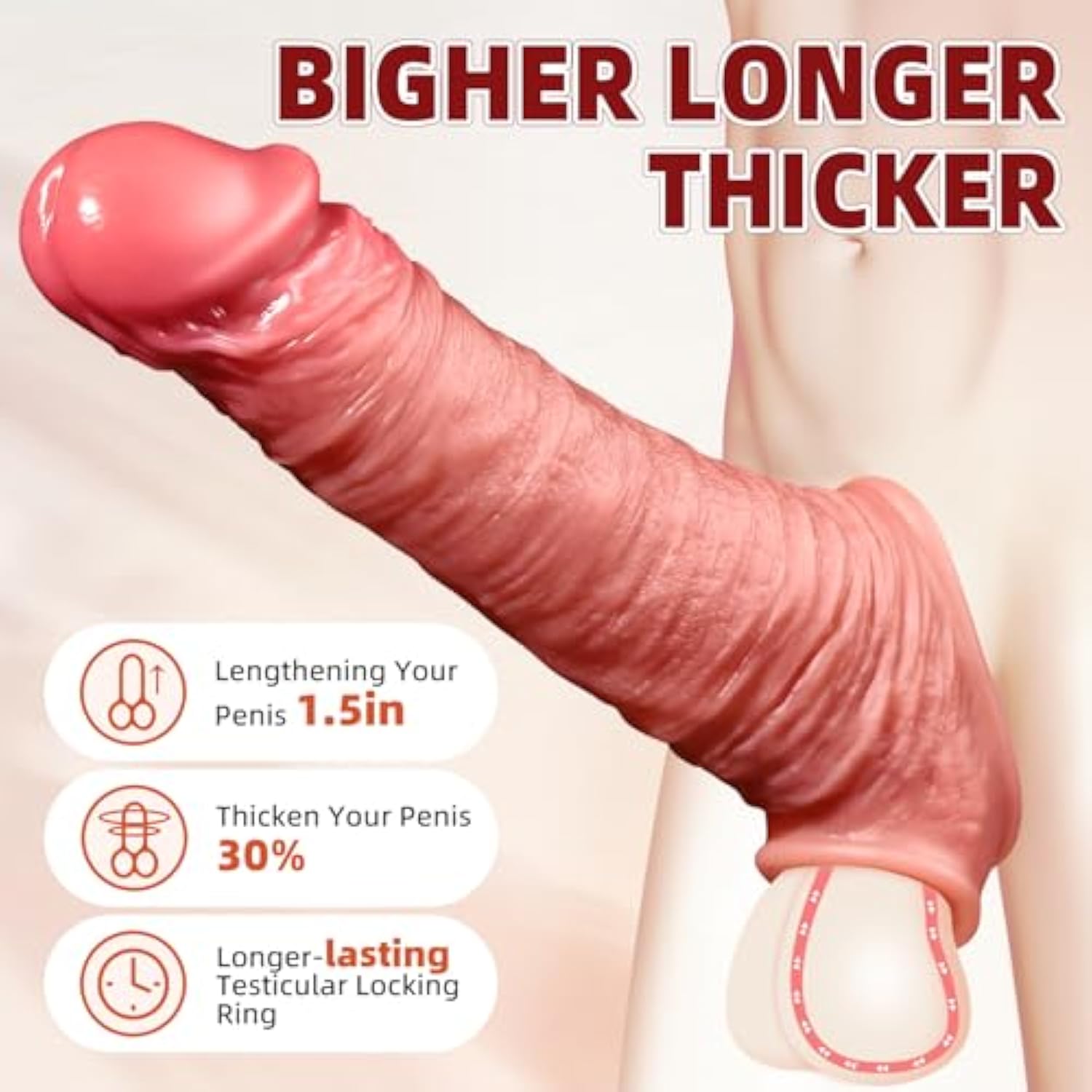 - -Our Penis Cover Will Make You Feel More Confident. It Will Help You Increase Your Girth By 1.5 Inches And 30%, And We Have Designed The Inner Ring Of The Penis Sleeve, A Sperm Locking Feature. We Have Designed Exclusive Textures. It Will Wrap Around Yo