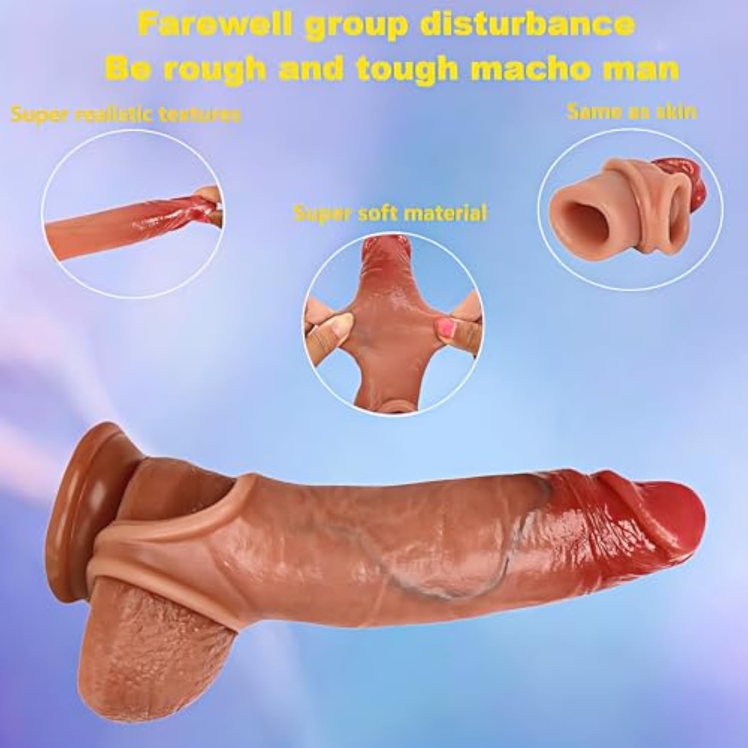 Reusable Penis Sleeve With Cock Ring Sex Toy,Male Sex Toy Penis Extender Penis Enlarger Penis Pump Enlargement Adult Toys Realistic Dildo Penis Ring To Enlarge Prolong, Adult Sex Toys For Men Couples