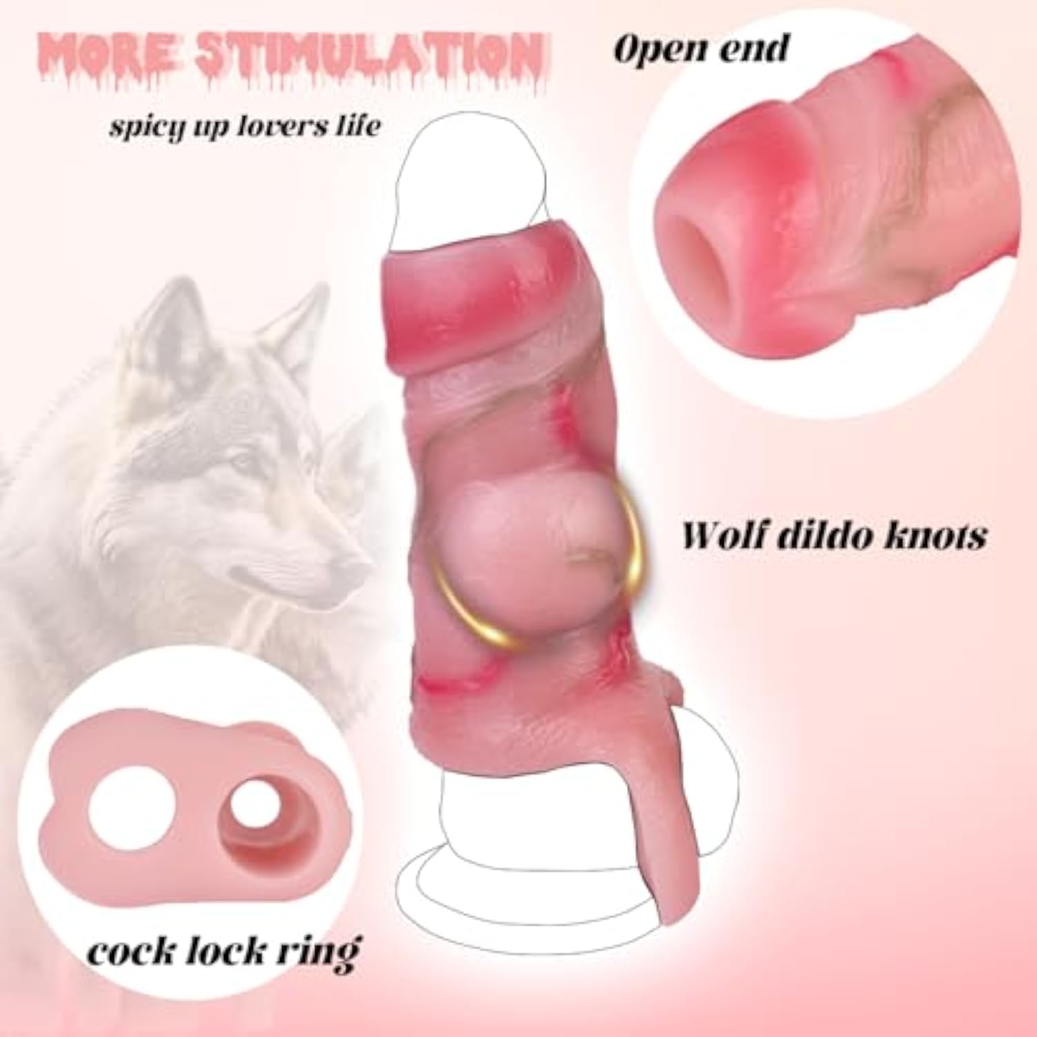 Reusable Soft Penis Sleeve With Cock Ring Couples Sex Toy,Men Stronger Dildo Sheath With Wolf Dildo Knots,Adult Couples Game Enlargement Thick Girth (White Pink)