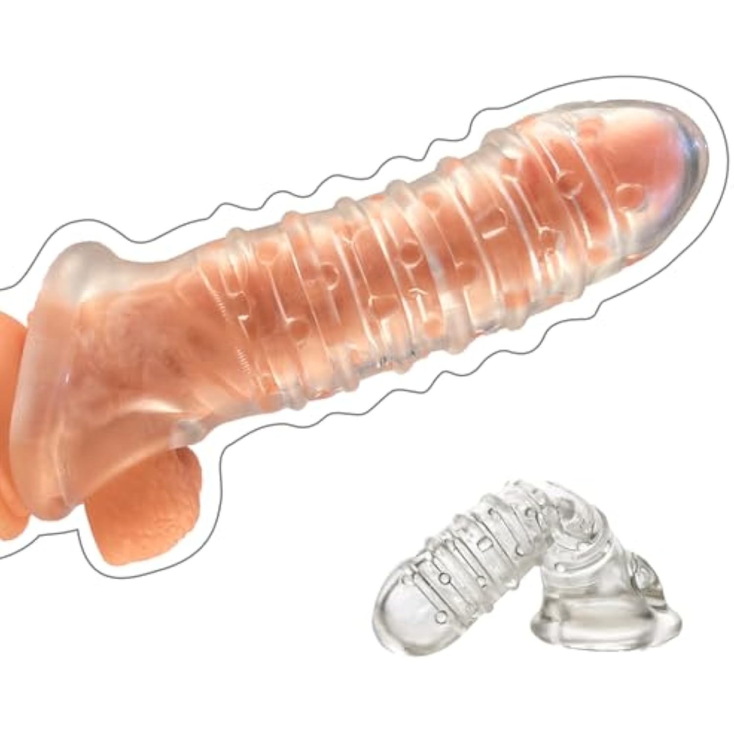 Reusable Thick Penis Sleeve Cock Ring, Ultra-Soft Cock Sleeve Penis Extender,Couples Cock & Girth Enhancer Adult Sex Toys For Men (Transparent)