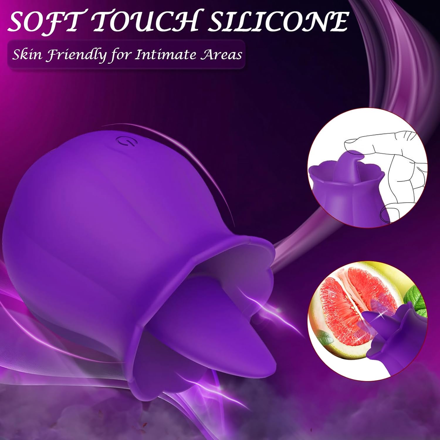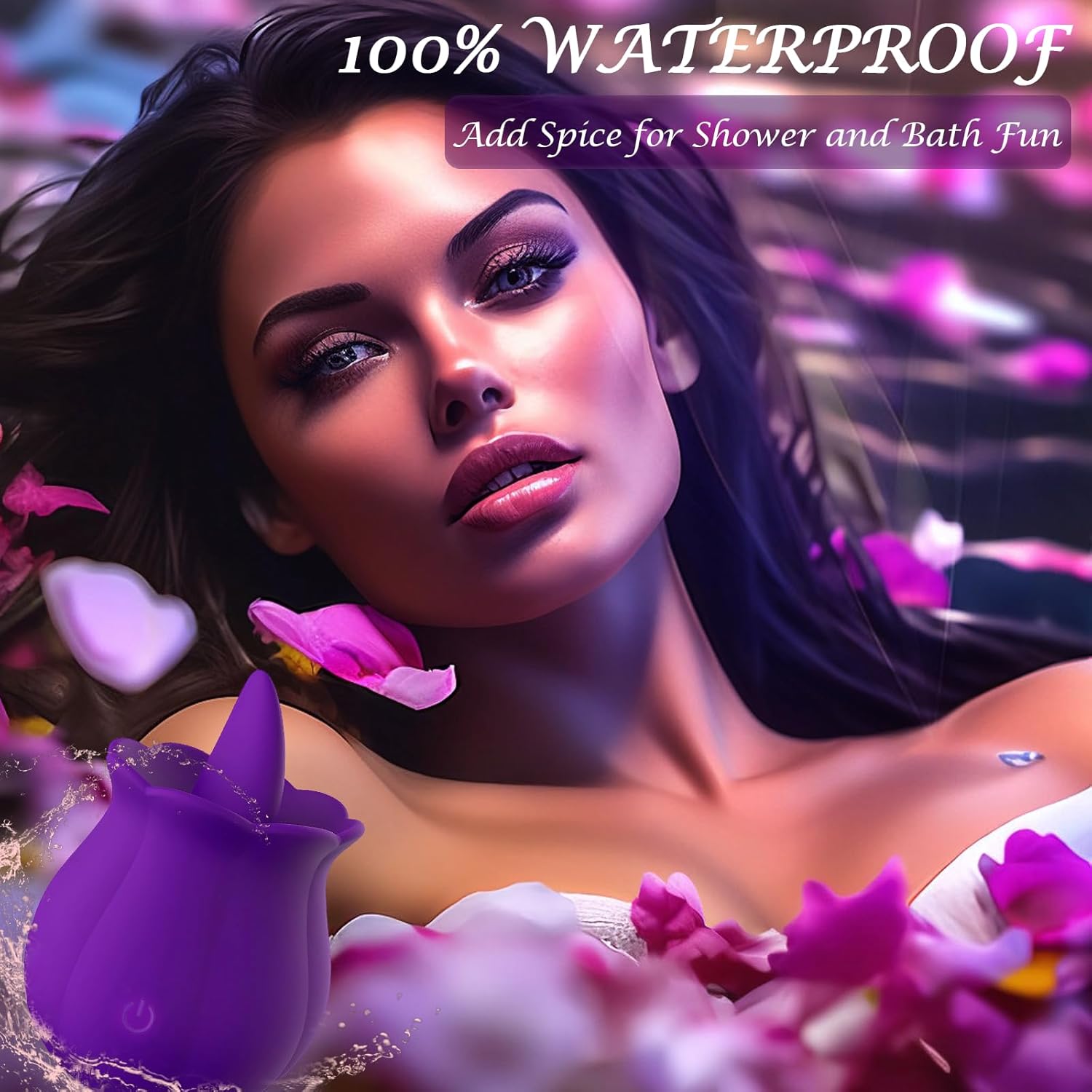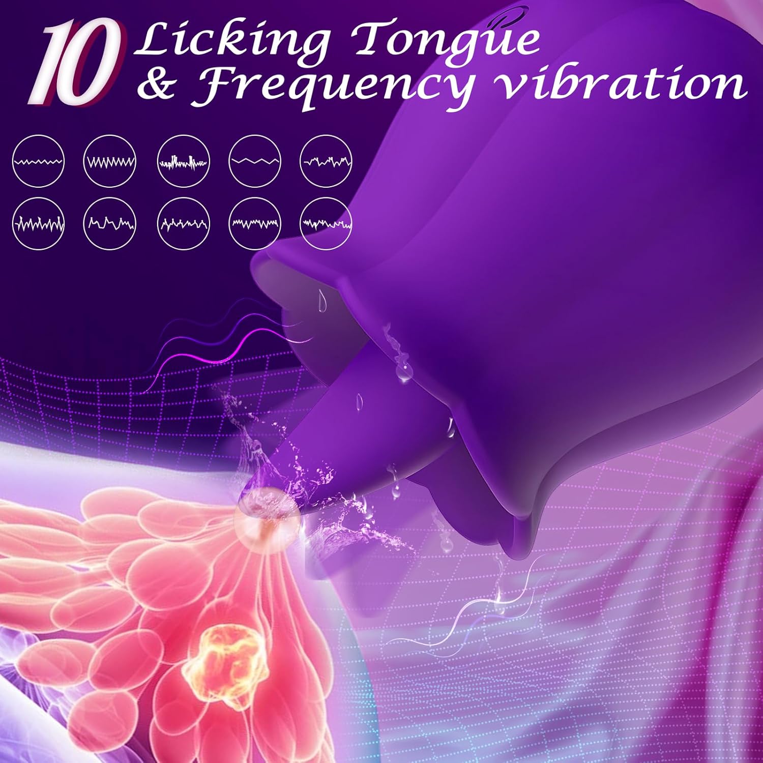 Rose Clitoral Stimulator with Licking Tongue & 10 Vibration Modes, Waterproof Toy
