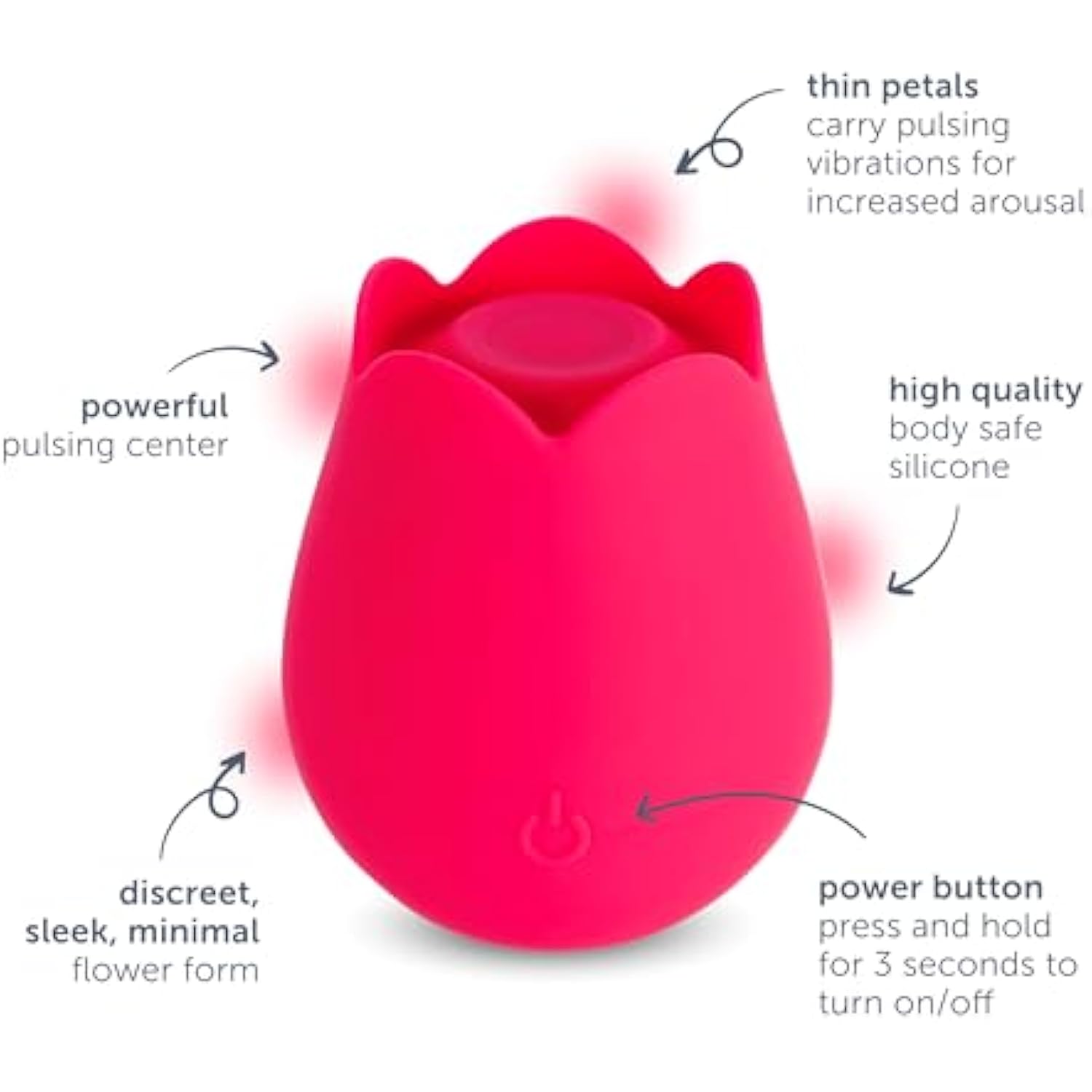 Rose Toy Vibrator For Women, Clitoral Stimulator Made Of Body-Safe Silicone, Waterproof, Usb Rechargeable And 10 Pulsing Settings, Red