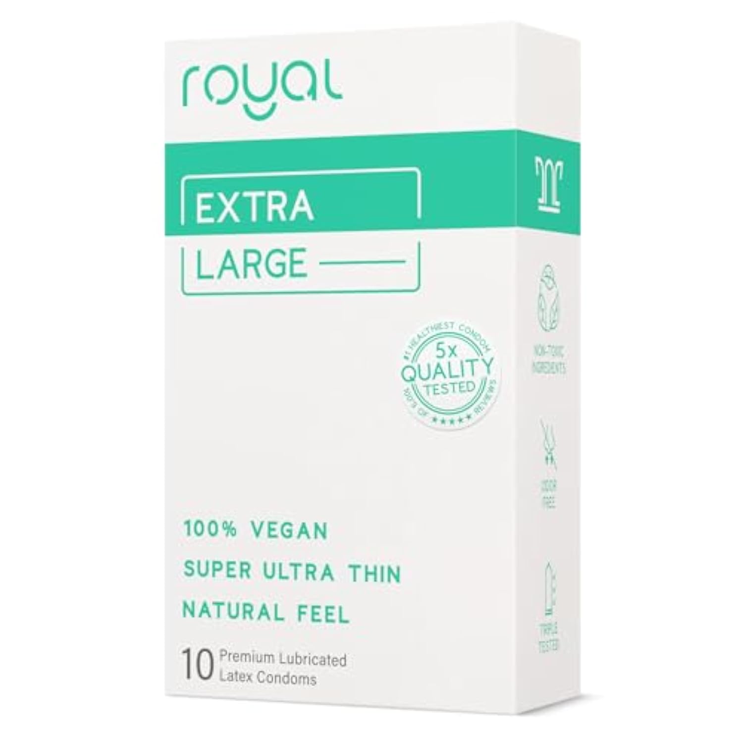 Royal Extra Large Ultra Thin Vegan Condoms for Men - Premium Lubricated Natural Condom - Unflavored Lubricant, Organic Latex - Odorless, Snug, Natural Feel - Safe & Durable - 10 Pack