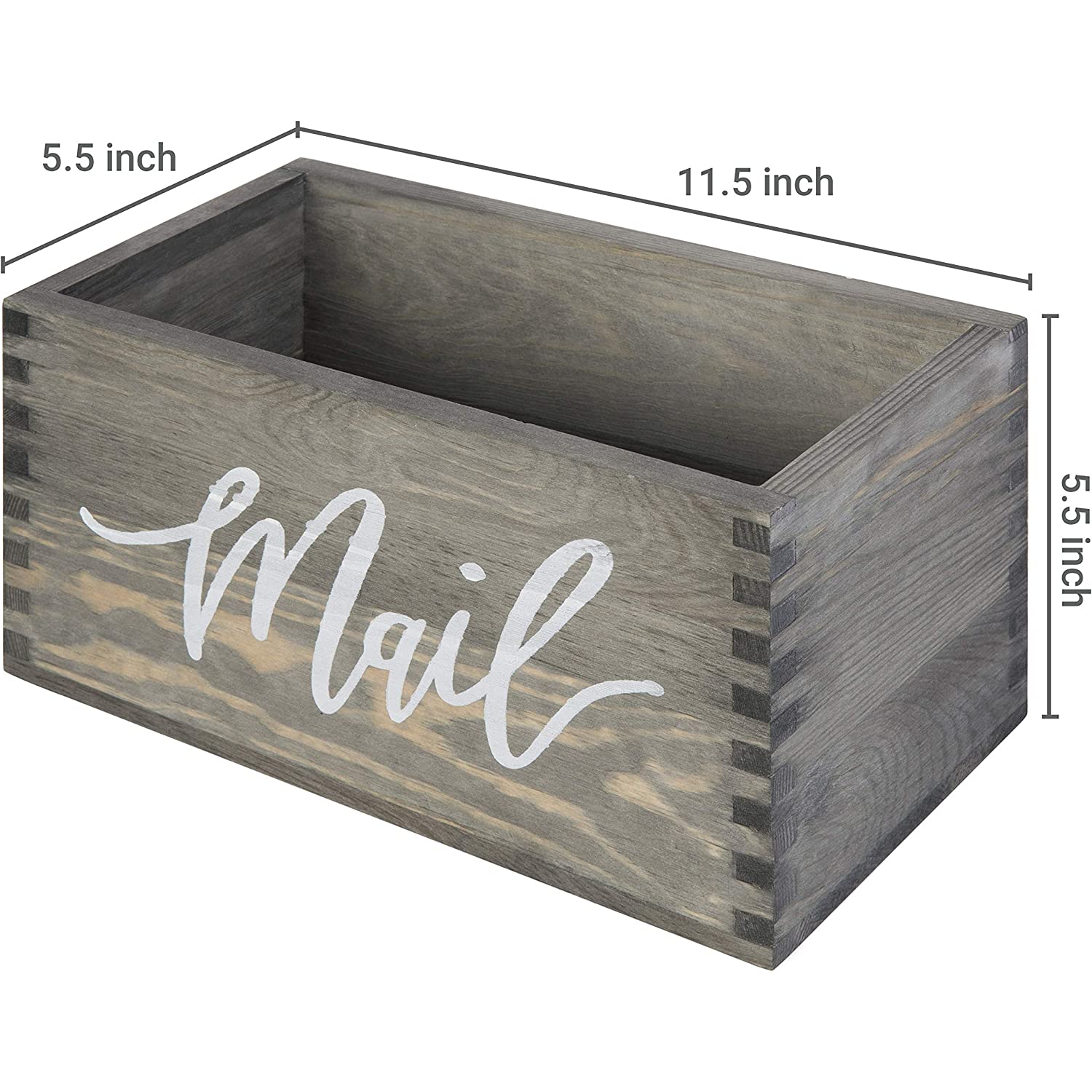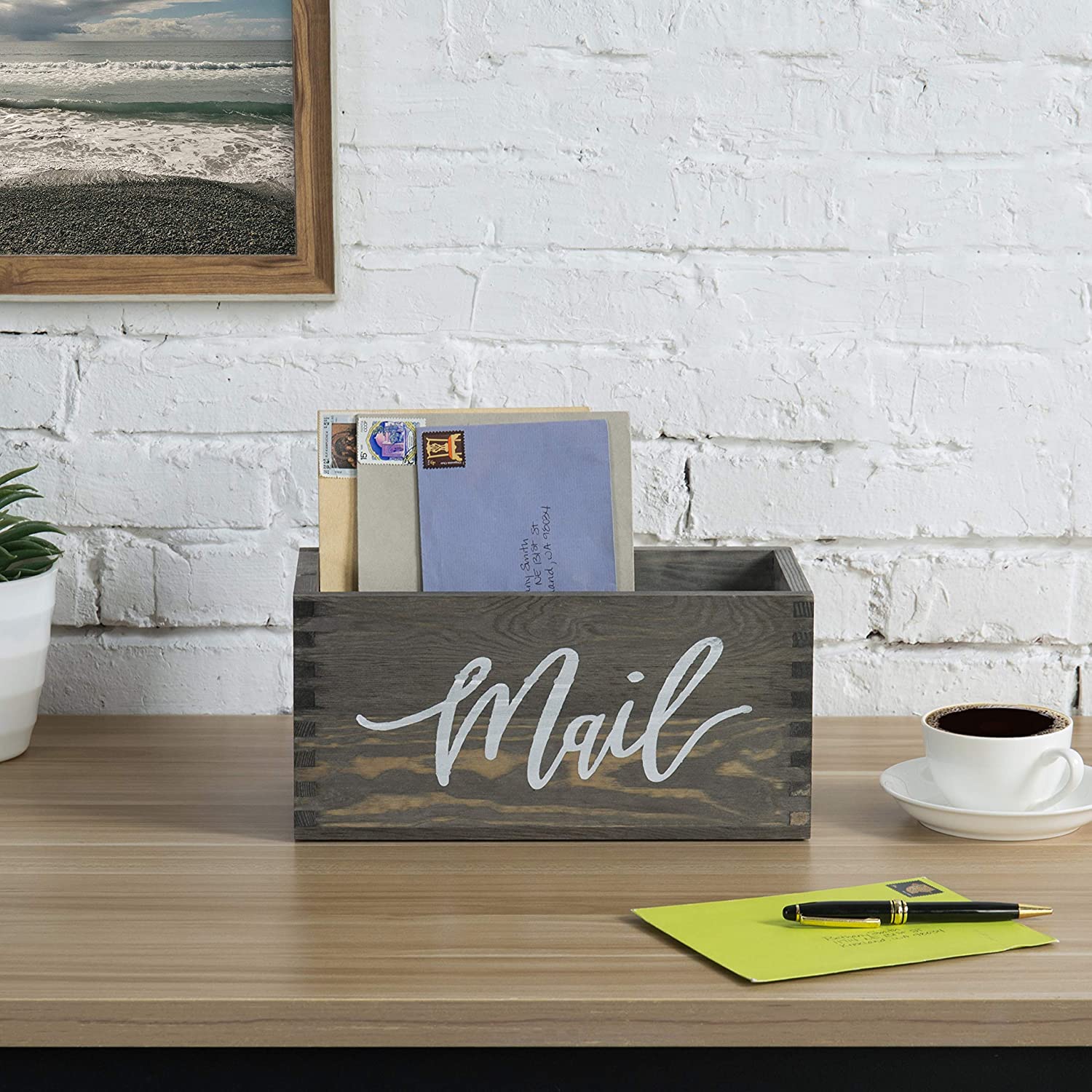 - Wooden decorative storage box with the word MAIL scripted on the front