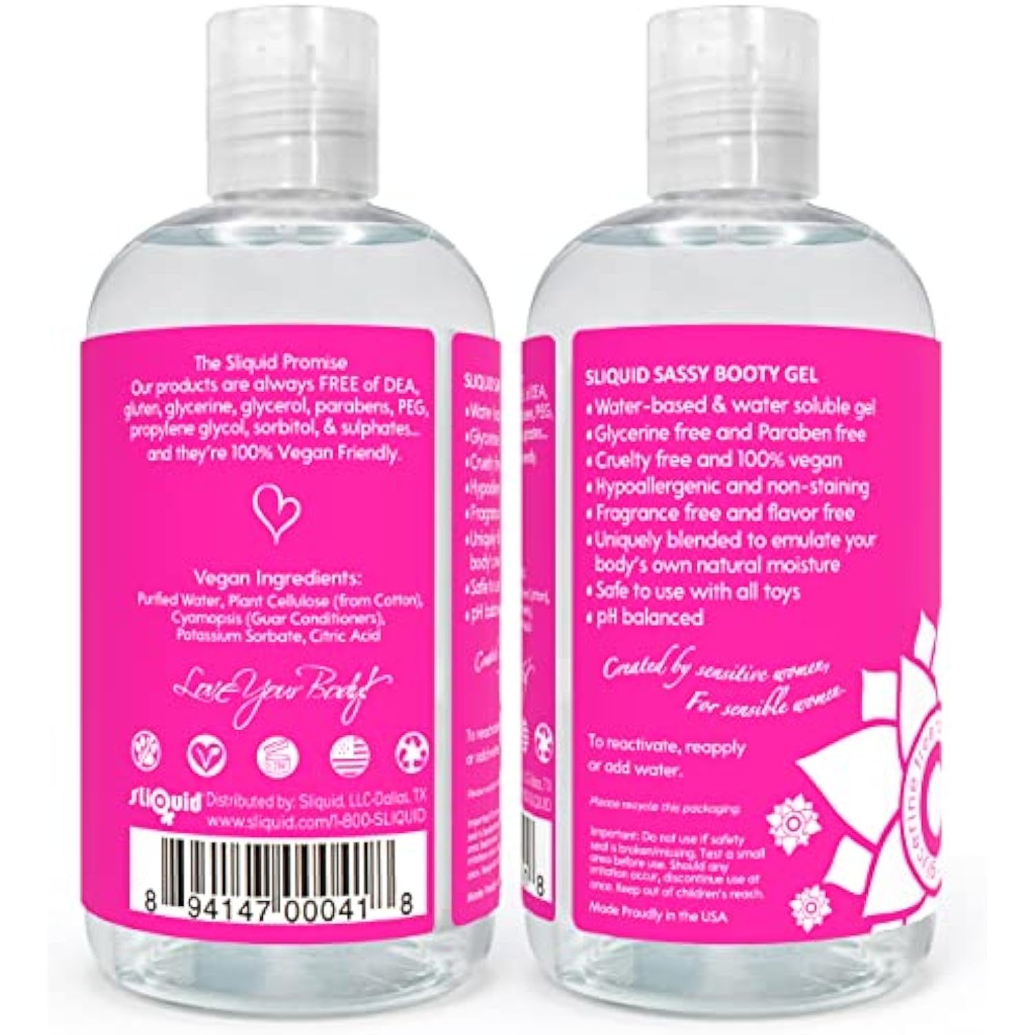 Sassy Water-Based Lube - Thick, Long-Lasting Gel, Natural Lube For Women/Men/Couples, Unscented, 8.5 Fl Oz