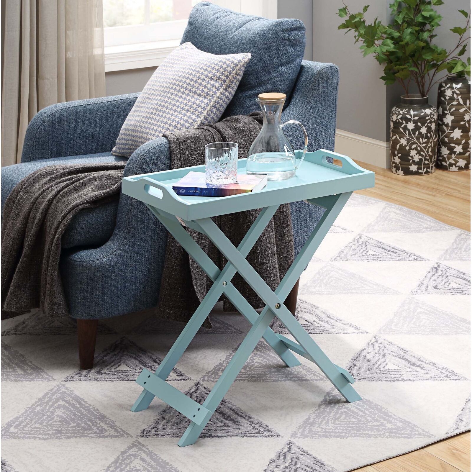 Sea Foam Wooden TV Tray Folding Snack Table Lip Serving Accent Bamboo Portable