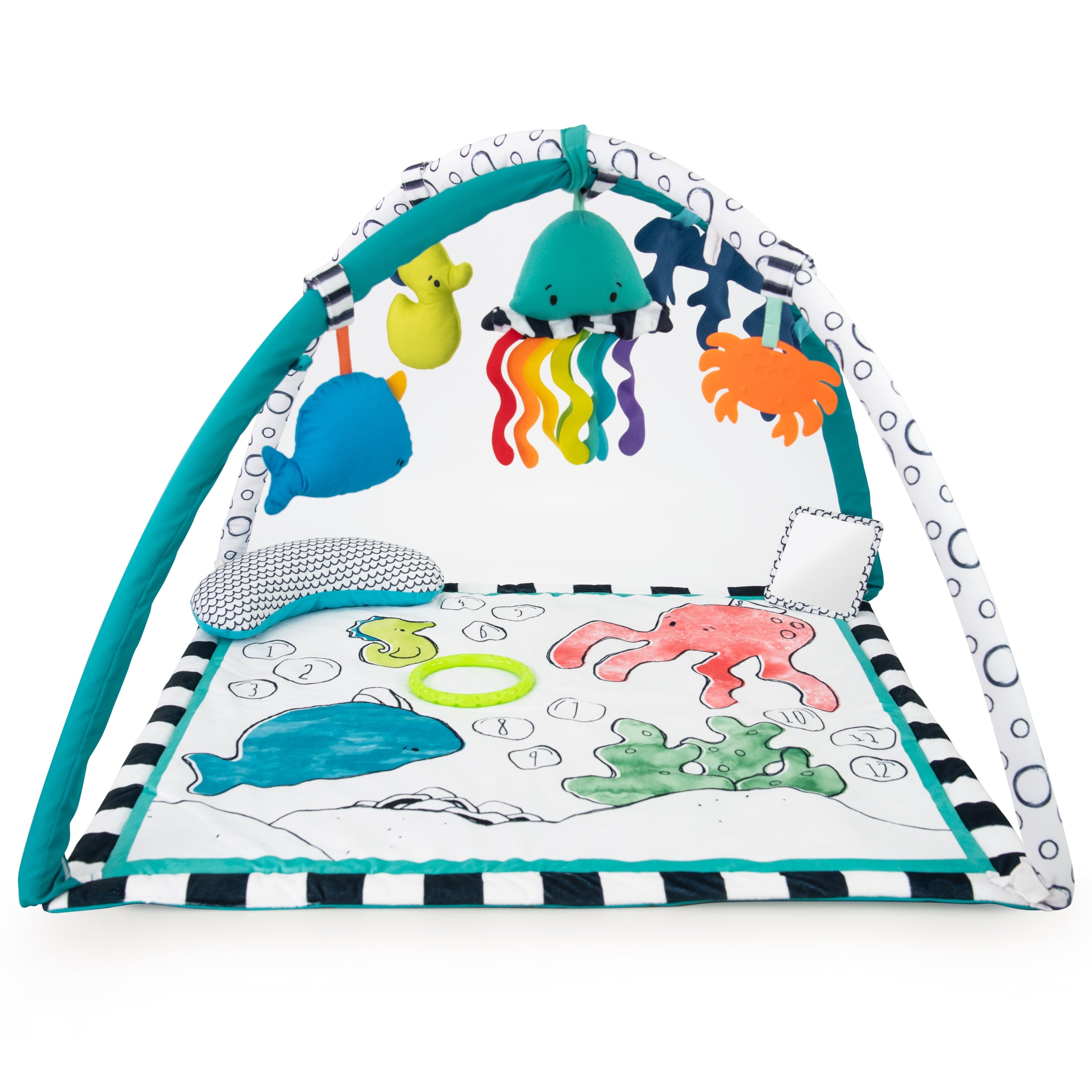 The Sea Pals Play Gym Is Designed To Help Baby Develop Well Rounded Body Movements, From Back Play To Tummy Time, To Sit Down Play. 7 Developmentally Appropriate Sea-Themed Toys Will Help Encourage Baby To Develop All Their Senses; Many With Adjustable Velcro Straps To Hang Anywhere Along The Arches Or Take Along For On-The-Go! Use The Mat As A Backdrop To Capture Photos Of Your Growing Baby Month-To-Month.