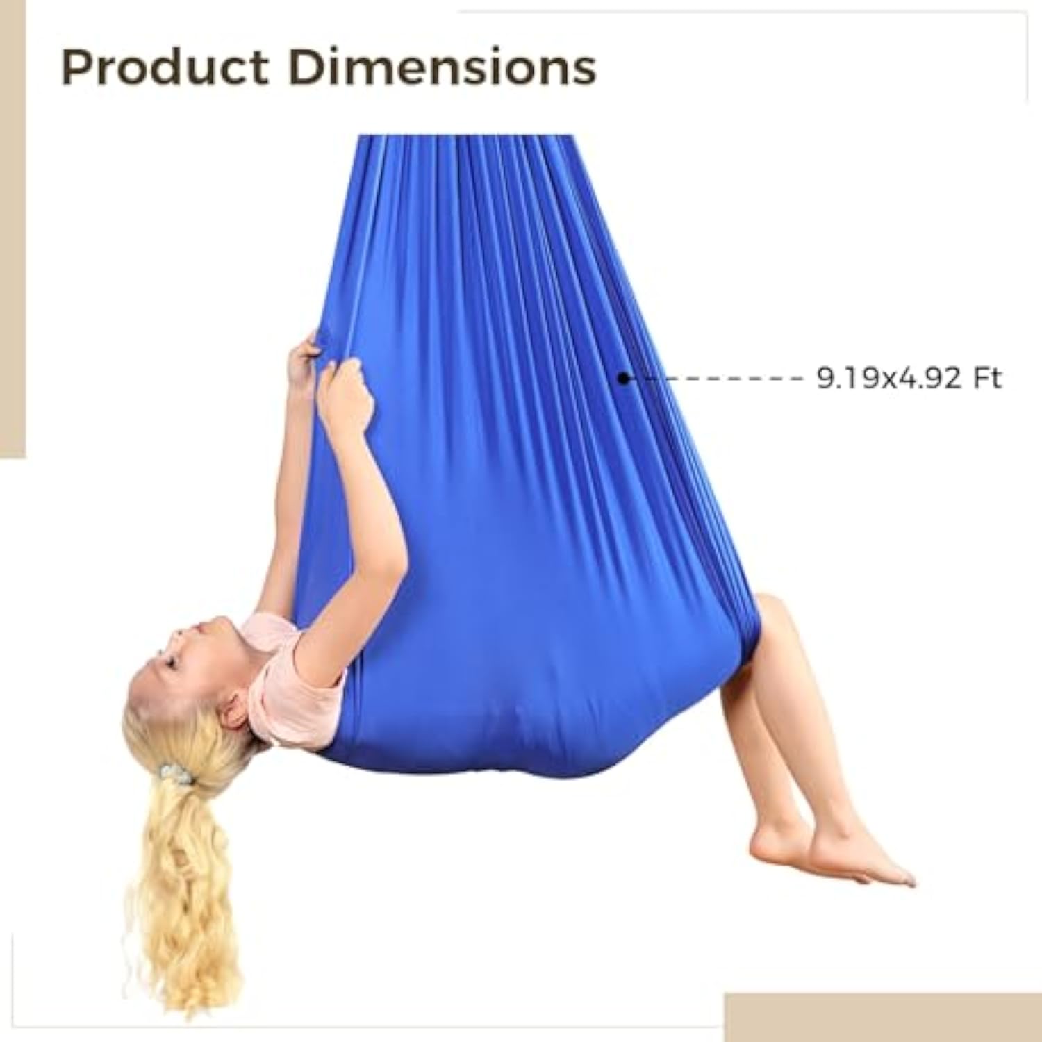| Spandex, Cotton | | Enhanced Coordination Balance: This Sensory Swing Helps Little Ones Build Vital Motor Skills, Enhancing Their Coordination And Balance; Suitable For Sensory Therapy And Relaxation | | Muscle Strength Skill Development: Strengthens Muscles And Improves Overall Physical Skills; Designed To Support Little Ones In Their Therapy Journey While Having Fun | | Comforting Safe Sensory Input: Offers A Safe, Comforting Experience Similar To A Hug; Suitable For Little Ones Needing Sensory Input For Calming And Emotional Support | | Soft Elastic Polyester: Made Of Quality Soft And Elastic Polyester Fabric; The Swing’S Colorfastness Ensures Lasting Vibrancy, Suitable For Everyday Use In Therapy Sessions | | Complete Set With Installation Accessories: Includes Everything Needed For Easy Installation; Comes With Heavy-Duty Metal Parts, Including Stainless Steel Disc, Screws, Hook, And An Extension Strap For Secure Mounting | |