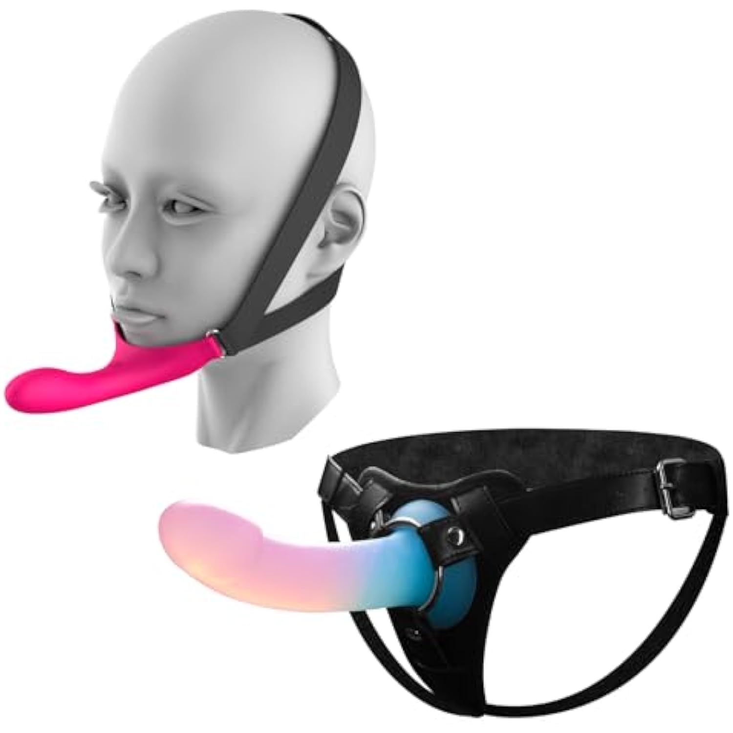 - Versatile Dual-Function Strap-On Set: This Set Features A Strap-On Face Chin Harness Vibrator Dildo With 10 Vibrating Modes, Ideal For Head-Mounted Oral Play And Solo Stimulation. It Also Includes A Leather Strap-On Harness With A 7.1" Gradient Silicone