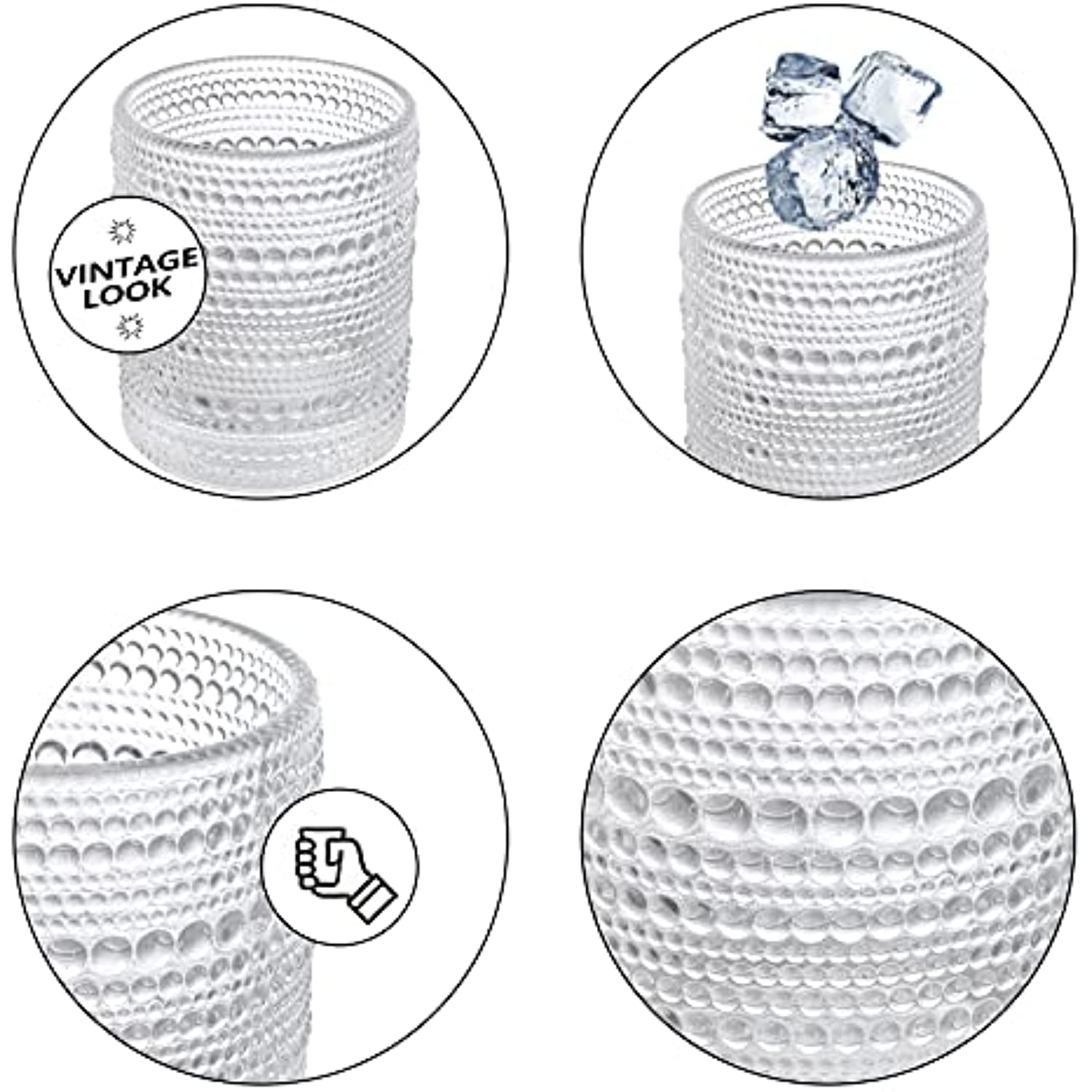 - Exquisite Design: Romantic water glasses are decorated with unique embossed exterior for providing extra grip to you, they feature with a vintage style that is perfect for casual entertaining or special events.