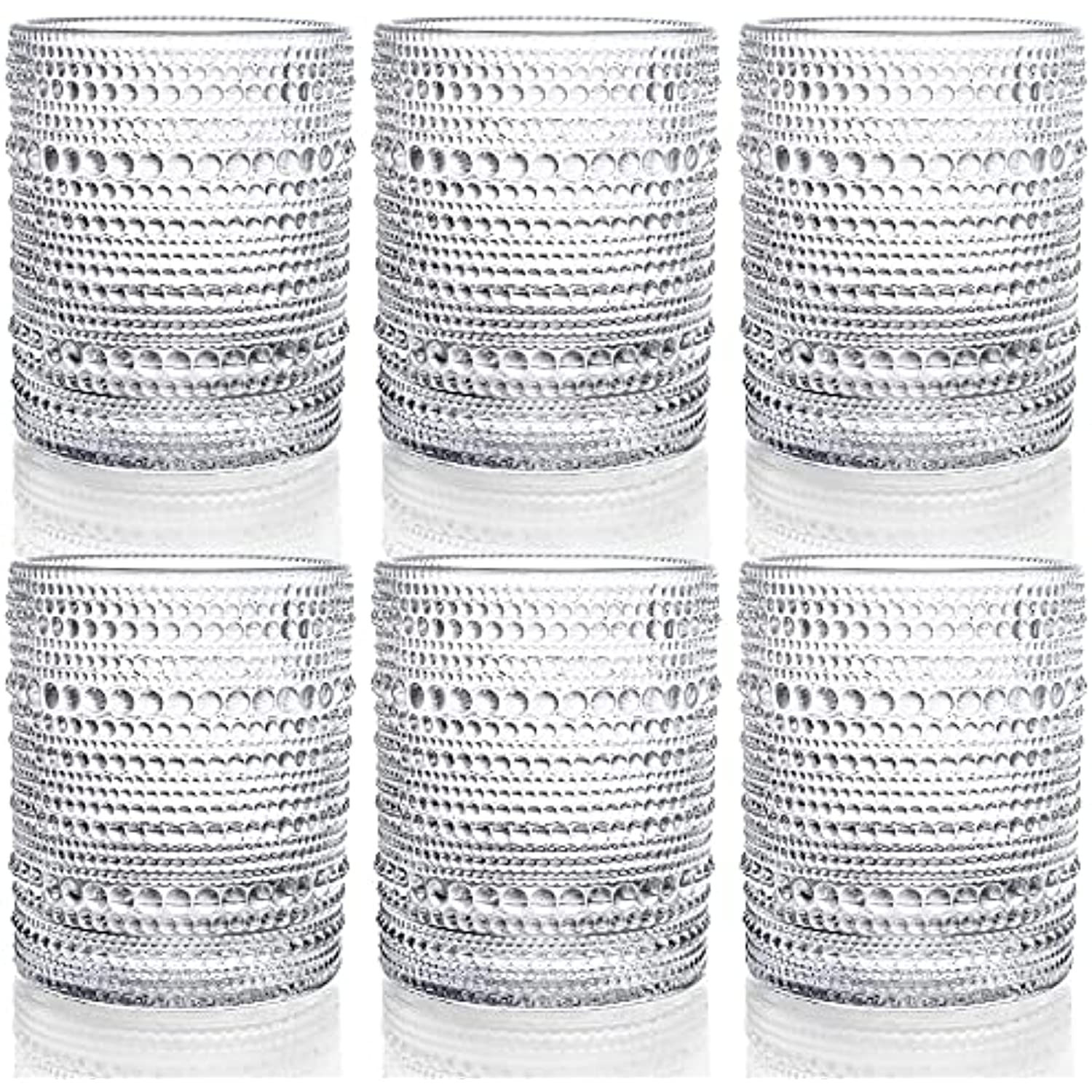 Set of 6 Romantic Water Glasses, 12 oz Hobnail Glasses Tumbler