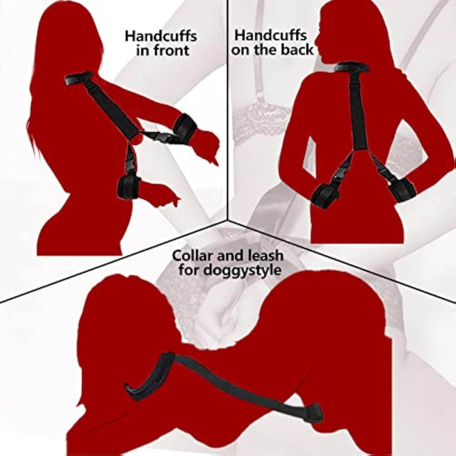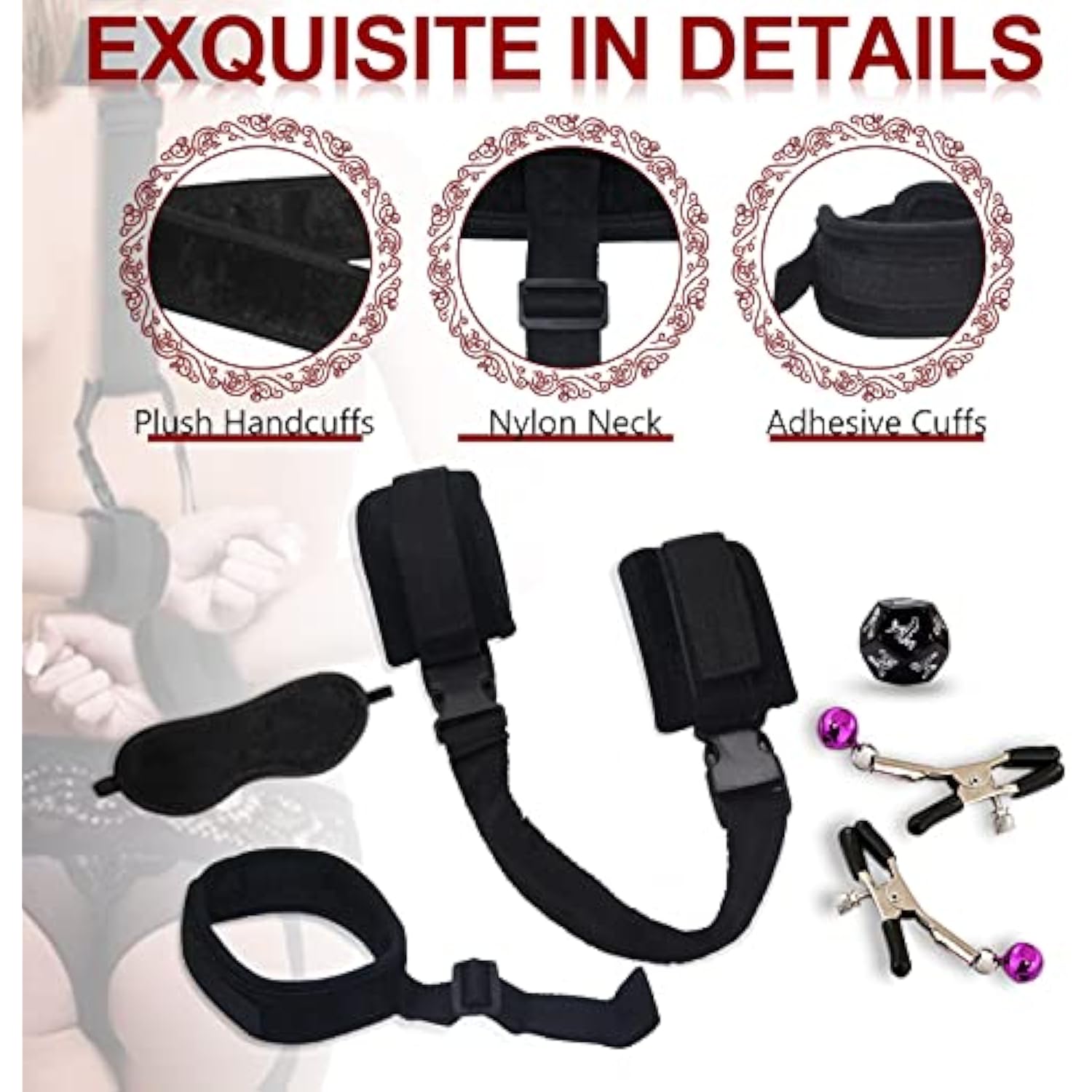 - Bdsm Bondage Restraints Kit: The Sex Bondage Kits With Blindfold, Nipple Clamp And Adjustable Straps, Simple Yet Elegant, Sm Games With Neck And Hands Restrained At The Same Time Is Easy To Use.