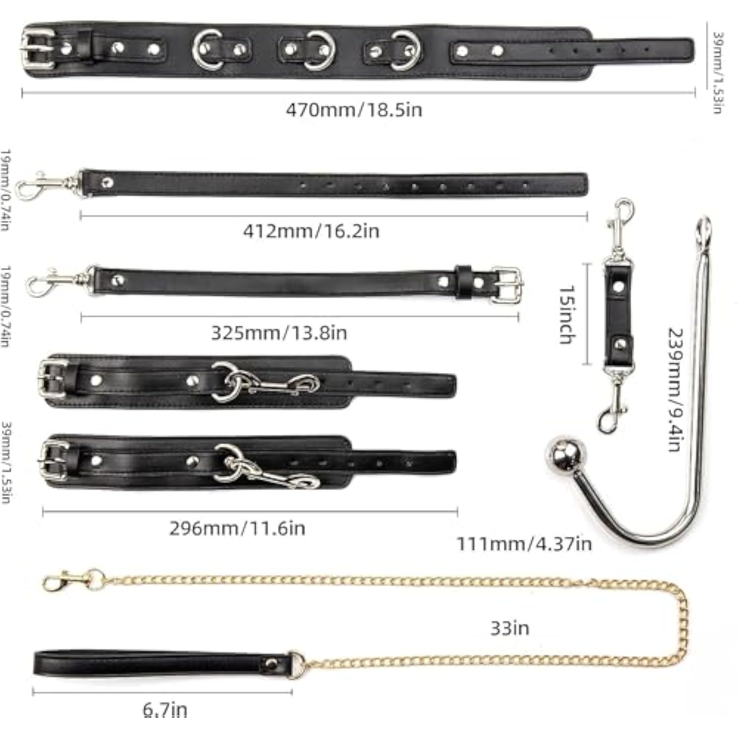| Unique Design - The Adult Sex Toy Anal Hook Trainer With Collar Set Opens Up A Whole New World Of Amazing Possibilities And Ways To Play. Our Steel Balled Anal Hook Trainer With Collar Set Is The Ultimate Fetish And Kink Device. The Collar Comes With A Curved J Shape Anal Hook Trainer With A Naughty A Little Ball Attached To Its End.Collar Can Hanger A Stainless Steel Traction Chain,Keep Your Slave Alert,This Anal Hook Trainer With Collar Set Gives Your Lover An Extra Bit Of Sensation. | | Fully Adjustable Design - The Collar, Bracelet And Anal Band Can Be Fully Adjusted. The Size Of The Restraint Kit Is Perfect For Both Men And Women. It Is Very Suitable For Beginners And Sm Lovers | | Diy Free Combination - All Accessories Of The Bdsm Kit Can Be Used Together Or Separately. The Neck To Wrist Restraints Kit Is Easy To Wear, Free Combination, Tie The Hands Of The Slave Firmly Enjoy The Pleasure Of Teasing-Yet-Torturous | | Safe Comfortable Material - Made Of Superior Leather And Stainless Steel Material, Safe, Skin-Friendly, Soft And Wear-Resistant. The Adult Extreme Sex Toy Is Comfortable And Durable For Long-Term Use With Many Repeats. | | It'S Hard To Escape! - The Collar And Binding Belt With Chain Bring The Fun Of Role Playing, Binding And Discipline, Domination And Obedience. The Anal Ball Will Provide Anal Stimulation And Multiple Orgasms For Slaves. The Diversity Of Collocation Will Bring More Play Experience. | |