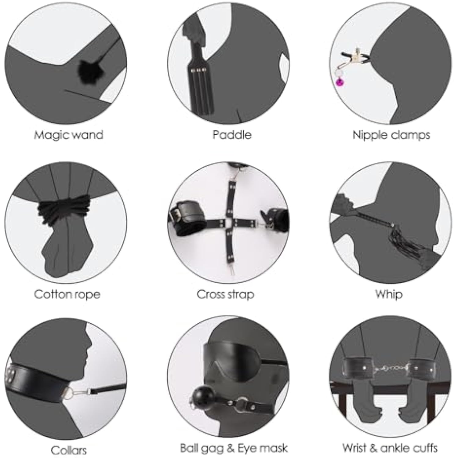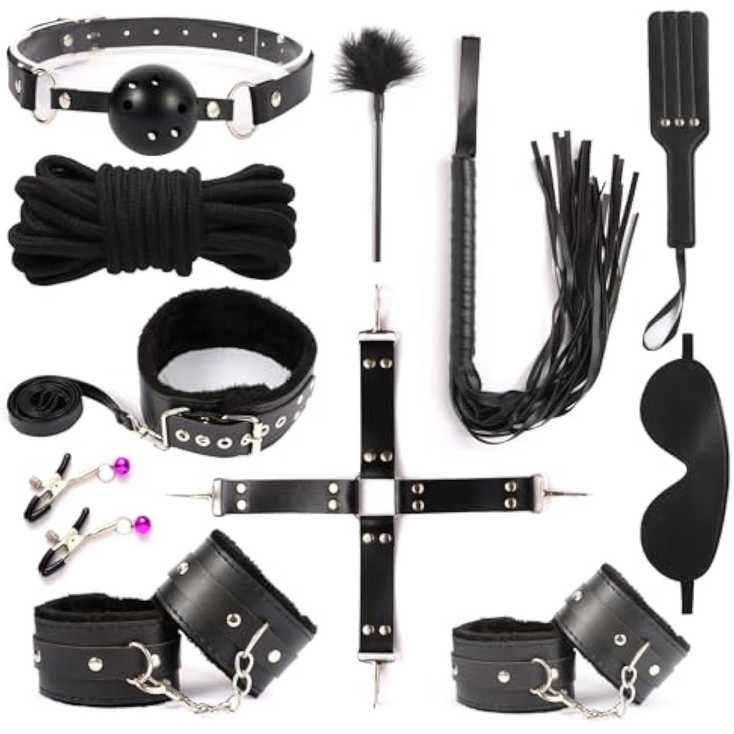 Sex Bondage Bdsm Kit 11Pcs Set Adjustable Handcuffs Ankle Eye Mask Feather Tickle Adult Play Sex Toy For Man Woman And Couple