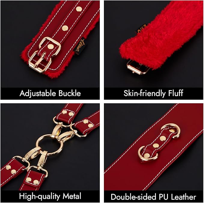 This adjustable bondage kit includes a waist belt, handcuffs, ankle cuffs, thigh cuffs, a blindfold, and a cross strap for various restraint play. Made from premium leather and nylon, it ensures comfort and durability. The cuffs are lined with plush material for a secure yet gentle experience, making it ideal for beginners. Designed for exciting role-play, dominance, and submission scenarios. Packaged discreetly for privacy, with dedicated customer support for any inquiries.