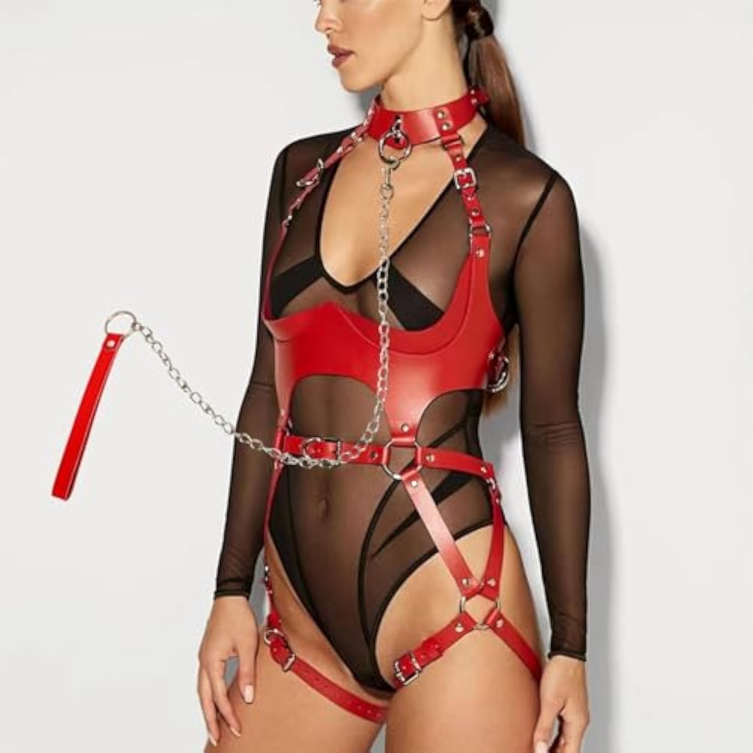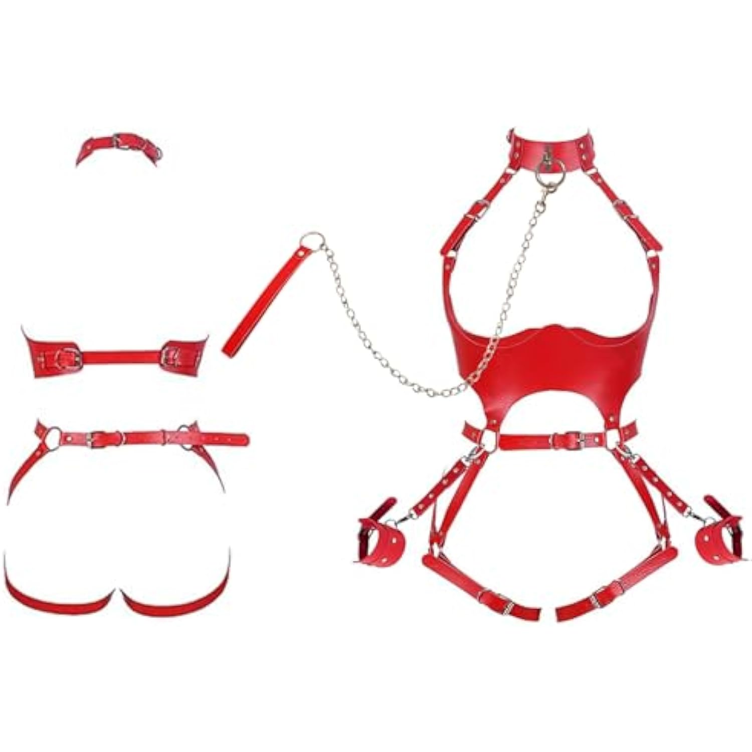 Sex Bondage Bdsm Kit Restraints Set, Adjustable Restraint Harness Kit With Leash Wrist Cuffs And Waist Garter Belt Full Body Harness