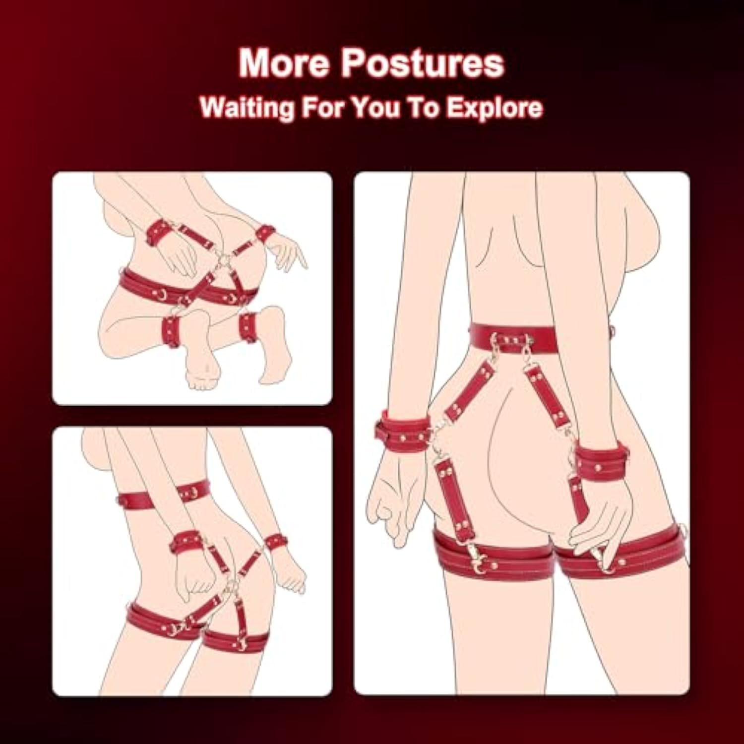 Sex Bondage Bdsm Toys Kit, Upgrade 11 Pcs Couples Restraints Toy Set With Adjustable Hand/Ankle/Thigh Cuffs Blindfold Cross Strap Waist Strap Paddle Adult Sm Games For Couples With Storage Bag