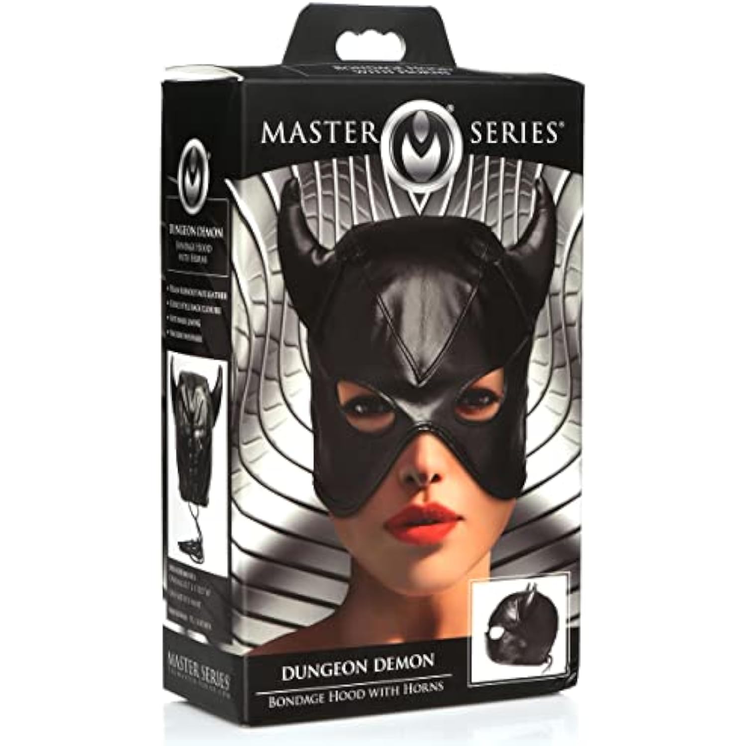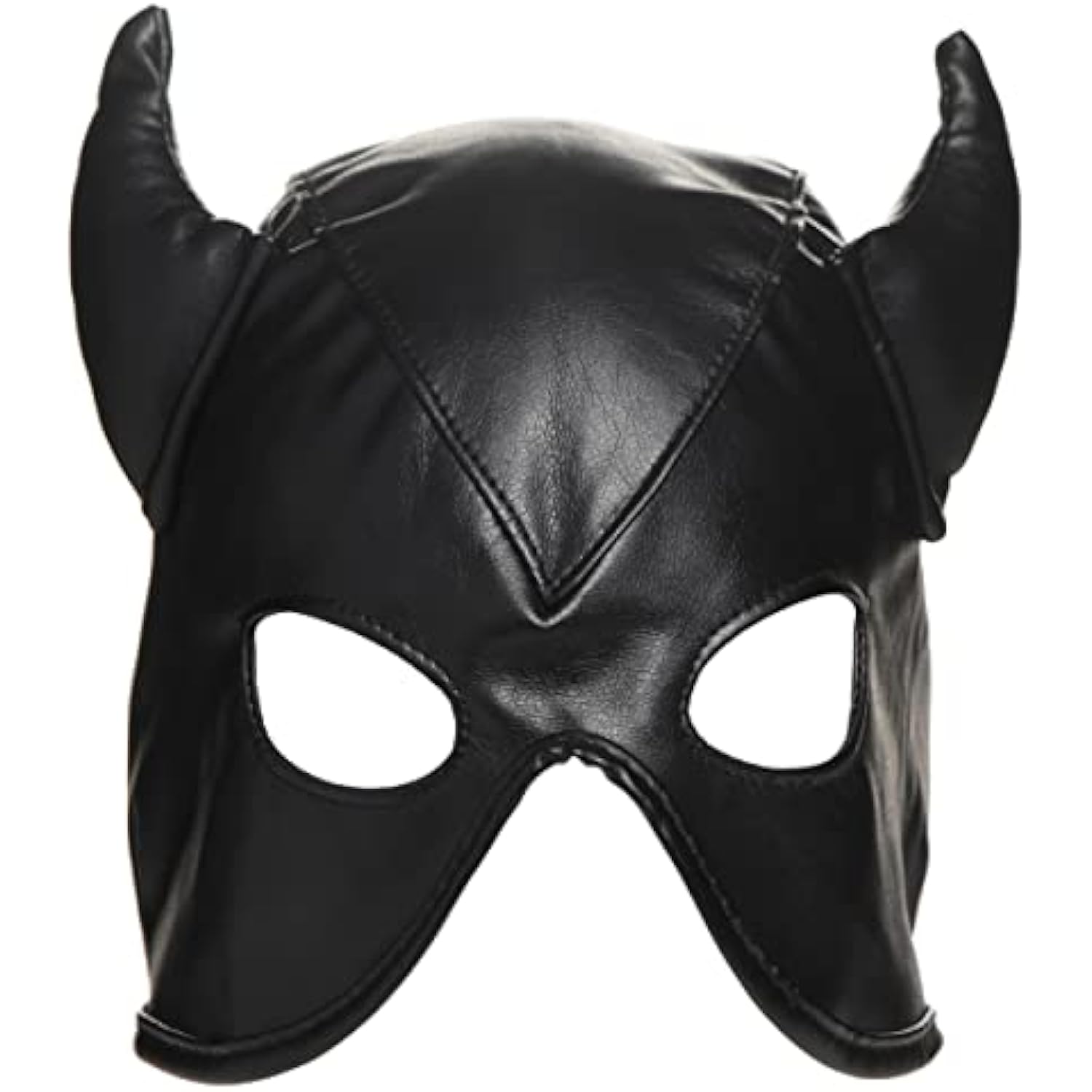 Sex Bondage Hood With Horns. Bdsm Mask And Sexy Fetish Cosplay Fantasy Costume For Women, Men & Adult Couples. Machine Washable, Vegan Leather, Black, One Size Fits Most