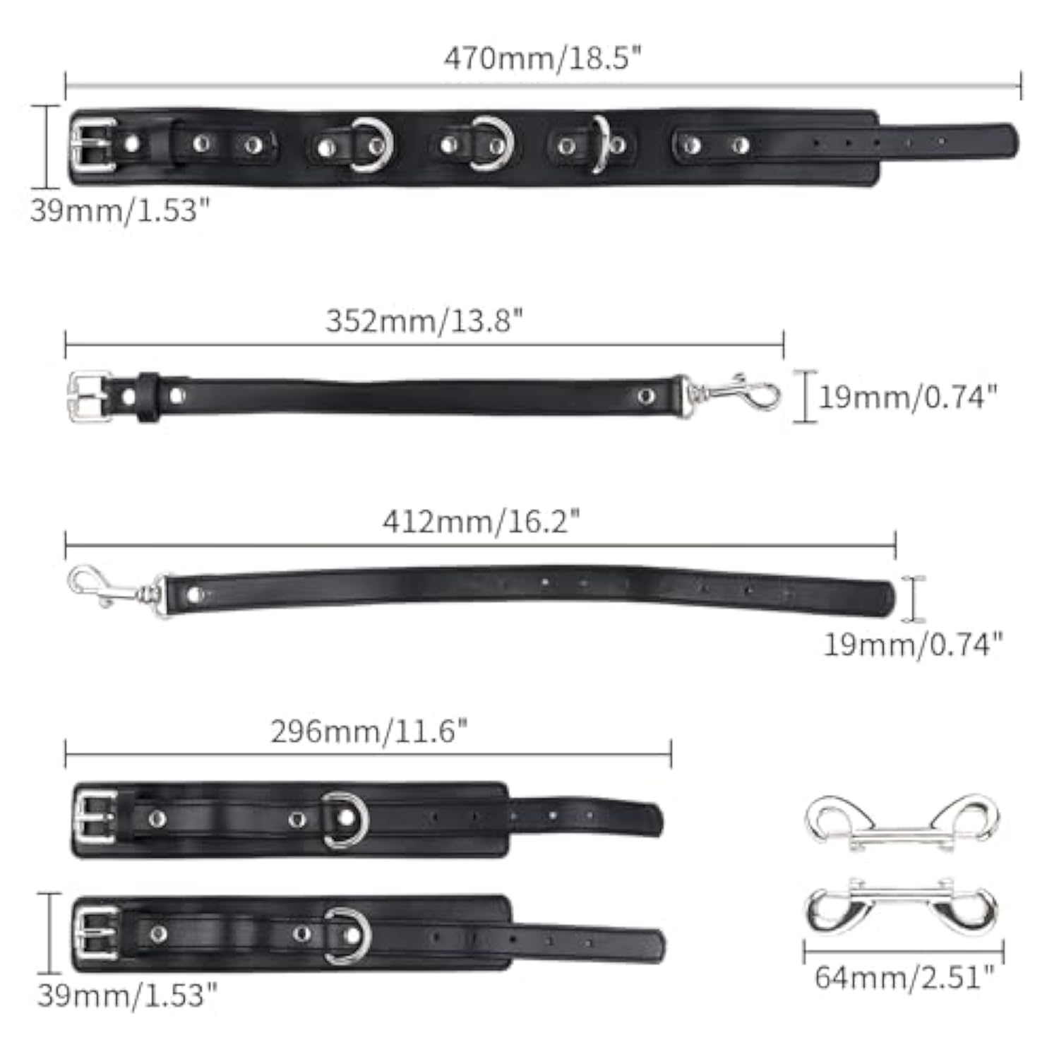 | The Anal Hook Trainer With Collar Bondage Set Opens Up A Whole New World Of Amazing Possibilities And Ways To Play. It Brings A Multi-Level Rich Erotic Pleasure. | | All Accessories Of The Whole Kit Can Be Used Together Or Separately. You Will Also Have 1 Collar, 2 Adjustable Bracelets (Handcuffs) And 3 Anus Hooks. | | Made Of Superior Leather And Stainless Steel Material, Soft And Safe. The Adult Extreme Sex Toy Is Comfortable And Durable For Long-Term Use With Many Repeats. | | Each Part Of This Bdsm Restraint Kit Are Adjustable And Flexible To Adjust Collar,Blindfold And Anal Butt Plug Strap,Suitable For Lover Perfectly. | |