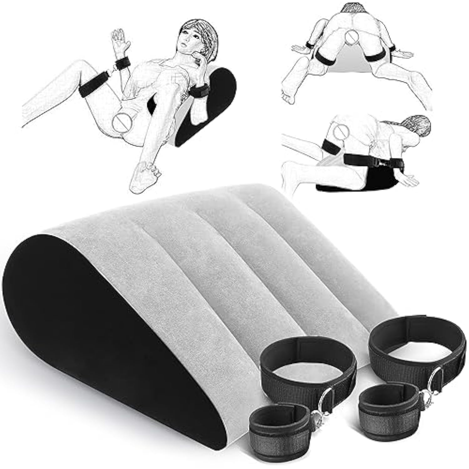 Sex Bondage Pillow Handcuffs Restraints Set - Bdsm Thigh Wrist Cuffs Inflatable Sex Position Pillow Sex Furniture Couples Toy Bdsm Bondage Restraint Kit Adult Sex Toys For Women And Couples(Gray)
