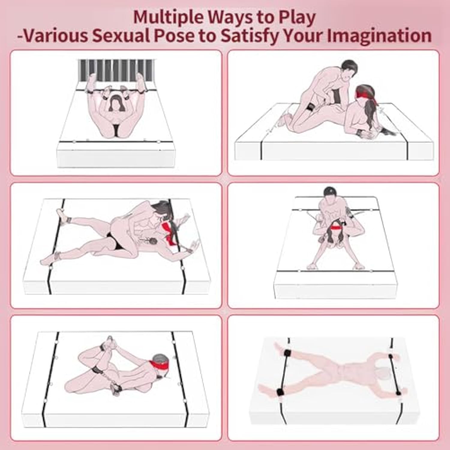 | ?Bondage Her To The Bed For Kinky Delights?Transform Your Bed Into A Devious Piece Of Bondage Furniture With This Bed Restraint Set, Then Make Her Wrists And Ankles Spread Open, Once Your Lover Is Bound And Vulnerable, Do As You Please! Watch Them Writhe In Pleasure And Pain As You Spank, Tickle, And Fuck Them. They Will Love Feeling Helpless To Your Every Desire Until You'Ve Had Your Way! | | ?11Pcs Bdsm Kit Versatile Bed Restraints?This Sex Bondage Set Can Fulfill All Your Fantasy. This Bed Bondage Kit Contains Hand/Ankle Cuff*4, Separated Bed Spreader Strap*2, Hogtie Cross Strap*1, Blindfold*1, Adjustable Nipple Clamp*2, Feather Tickler Paddle*1. The Complete Bdsm Sex Toys Set Is Featured With Multiple Using Ways, Such As Bed Restraints Play, Separately Body Bondage Play And So On. Great To Enhance Sexual Pleasure, Whether You'Re A Bondage Beginner Or An Experienced Enthusiast | | ?Upgraded Adjustable 2 Sex Straps + Blindfold?Crafted With High Quality Durable Material, This Bdsm Toys Sex Restraint Kit Features 2 Separate Straps For Quick And Easy Restraint Set, Each 180''Strap Adjusts To Fit Any Size Bed. The Sex Blindfold Fits Comfortably Over Your Partner'S Eyes, Immersing Them In Complete Darkness, Heightening Their Senses And Anticipation. By The Way, The Long And Soft Blindfold Can Be Used As Both An Eye Mask And A Bondage Strap For More Sex Fun | | ?2 Nipple Clamps +2 In 1 Feather Tickler Paddle Sparks Wild Sex?The Nipple Clamps Are Smooth Safe. It Can Be Adjusted For Tension Or Tightness According To Your Needs, Also Can Decorates Your Lover'S Beauty, The Crisp Pleasant Bells Adds More Fun In Games. Caress And Spank With The Smooth Bdsm Paddle, Or Tease With The Titillating Feather Tickler For Kinky Sex Submission And Enhanced Sensations. Unleash Fantasies With The Enticing Bdsm Restraints Set To Restrain Your Lover For More Pleasure | | ?4 Padded Sex Cuffs +Hogtie Cross Strap For Unlocking More Bondage Positions?The Bondage Cuffs Are Fully Adjustable, You Can Tighten Or Loosen Them As Needed, Velcro-Fastener Make Them Easily And Quickly To Remove. The Bdsm Cuffs Are Lightly Padded For A Comfortable Safe Fit, Also Sweat And Stickiness Resistant. Other Than Simply Connecting The Cuffs To The Nylon Straps Under Mattress, You Can Connect The Hog Tie Cross Strap /Lobster Clasps Together With Sex Cuffs To Unlock More Posture | | ?Easy To Use - Adjustable, Detachable Portable?The Sm Straps Sex Restraints Set Are Adjustable To Meet Your Specific Needs. With Detachable, Flexible Clasps, Slipping Buckles, The Sex Straps, Cuffs And Other Accessories Can Be Easily Installed, Detached And Adjusted. To Ensure The Durability And Stability, Crafted With Premium Metal And Nylon Materials, Featuring Visually Stitching Craftsmanship. Weighing About 0.95Lb Per Set, This Portable Convenient Couples Sex Toy Is Ideal For Travel. | | ?Discreet Packaging Satisfaction Caring?This Adult Toys Kit Is Discreetly Packaged To Ensure Personal Privacy. Quality And