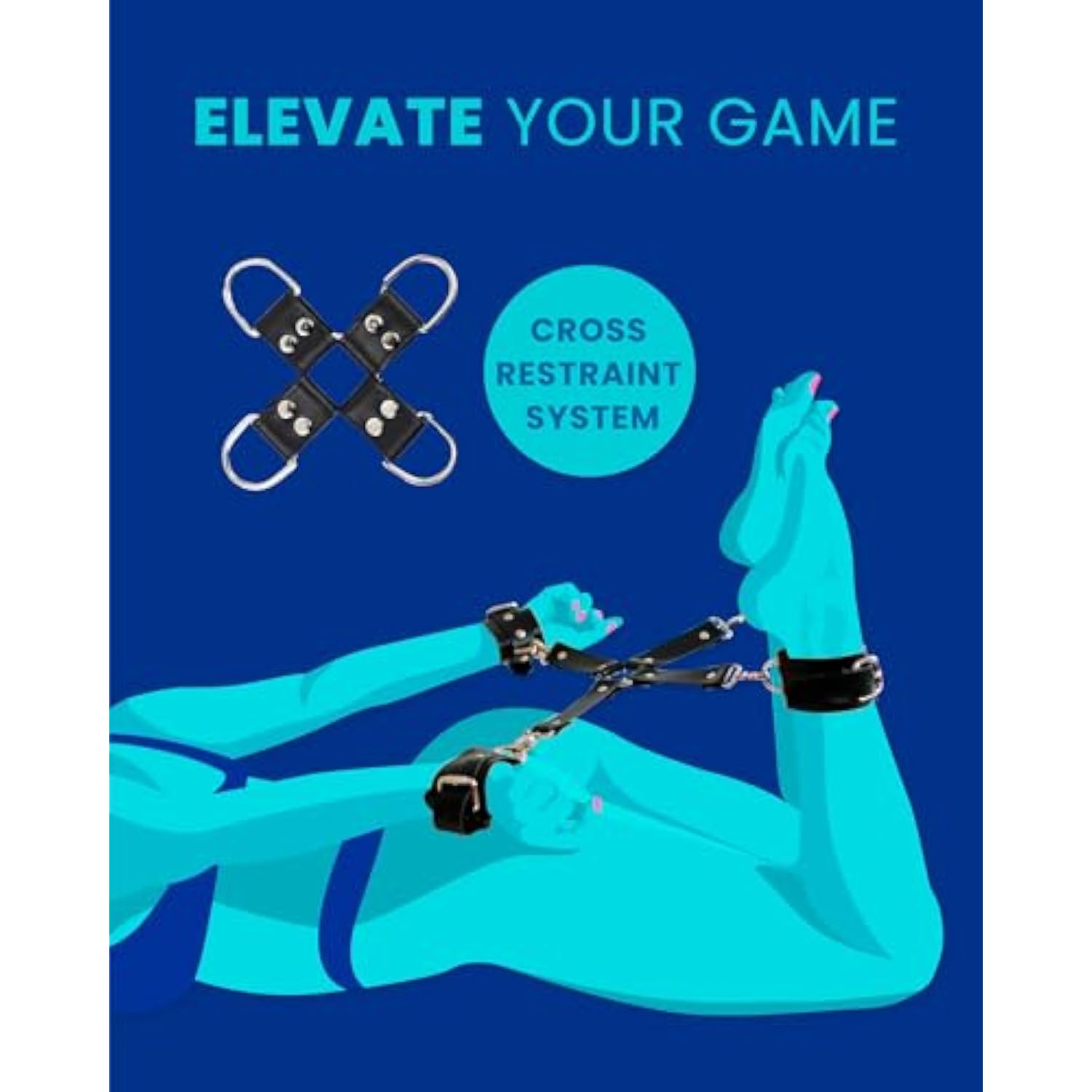 Sex Bondage Restraints Set - 10 Piece Sex Bed Restraints - Bondage Gear & Accessories Sex Straps, Cuffs, Blindfold, Cross, Tickler And Pouch - Bdsm Bed Restraint For Queen Sized Bed