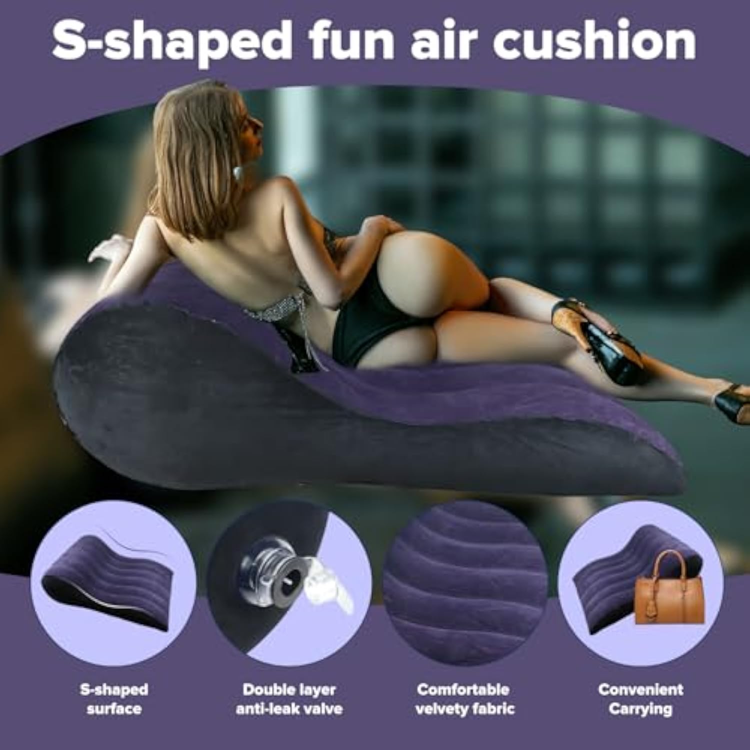 Sex Cushion Bondage Kit, Inflatable Sex Position Pillow With Adjustable Sex Strap,Sex Bdsm Kit Sex Furniture For Adult Deep Position Support, Velvety Cushion With Sling Restraint