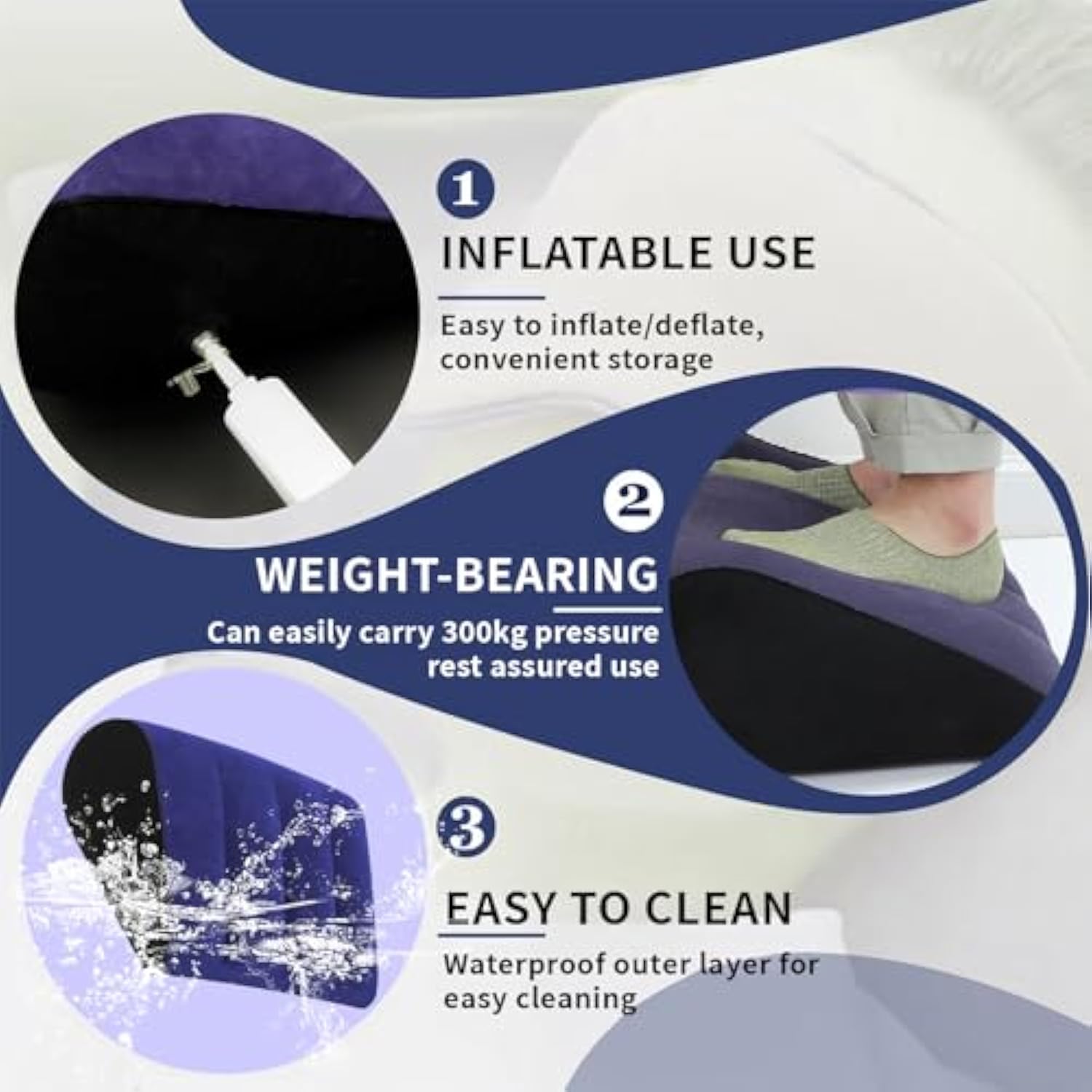 | This Pillow Uses Soft Comfortable Pvc Flocking,It Is Extremely Resilient And Velvety Soft On The Skin Without Sticking Or Slipping. It Can Be Cleaned Directly Or With A Wet Wipe. | | Enhance Your Experience By Using Our Wedge Cushion In Different Ways To Suit Your Needs. The Support Cushion Prevents Fatigue And Pain Caused By Holding The Same Posture For A Long Time. | | The Pillow Is Designed To Provide Intense Orgasms For Both Partners. | | Its Lightweight Design Makes It Easy To Carry With You Wherever You Go, So You Can Enjoy Intimate Moments No Matter Where You Are. | | Our Pillow Is Foldable And Easy To Inflate Even Without A Pump. It Is Also Ideal As A Travel Pillow, Neck Pillow For Travel, Support Pillow For Your Back Or As A Backrest For The Sofa. | |