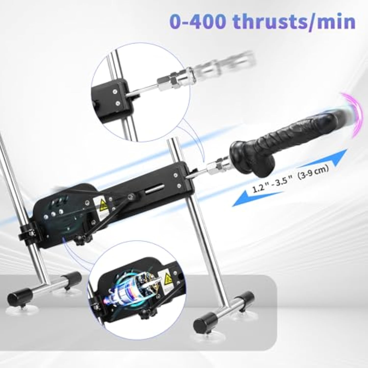 | Suitable For Solo Or Partner Play. You Can Use The Remote Control To Control The Speed Of The Machine, And There Are 18 Different Telescopic Modes. It Also Comes With 5 Machine Attachments, So You Have A Variety Of Options. The Machine Itself Is Adjustable So You Can Find The Angle That Works Best For You. | | Powerful Motor: The Powerful Motor Of This Sex Machine Provides Variable Speed, Reaching 400 Strokes Per Minute, The 70W Ultra-Powerful Motor Fully Meets Your Needs, And The Stroke Length Ranges From 1.2 Inches To 3.5 Inches (3-9 Cm). | | Better Suction Effect: The Stainless Steel Metal Frame Enhances Stability And Sturdiness, Plus 4 Powerful Suction Cups, Which Help To Fix The Machine And Prevent It From Moving On Any Smooth Surface, Providing A Stable Foundation For The High-Speed Telescopic Kinetic Energy Behind It. | | There Are A Wide Variety Of Accessories: The Sex Machine Can Be Connected To Accessories With Two Different Interfaces. The Machine Itself Is Adapted To Air Quick Connectors And Is Also Equipped With A 3Xlr Converter. It Can Also Assemble Accessories With 3Xlr Interfaces. This Machine Also Provides 3 Different Sizes Of Dildo Toys, Which Can Be Used In Random Combinations. The Most Special Thing Is That There Is A 4.1" Suction Cup Adapter, Which Allows You To Use Your Own Suction Cup Toys, Allowing You To Enjoy The Pure Fun Brought By The Toys. | | Silent Motor And Discreet Packaging - The Adult Sex Machine'S Silent Motor Ensures A Discreet Experience (Noise Level ?50 Db) Rest Assured, Our Toys Come In Discreet Packaging, So You Don'T Have To Worry About Privacy Or Embarrassment When Receiving The Product. | |