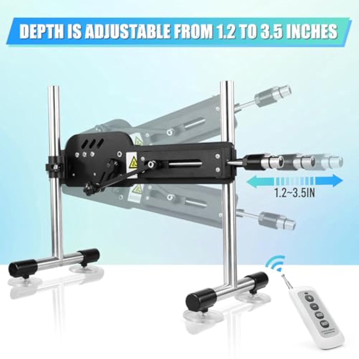 | ?Remote Control Thrust Dildo Sex Machine?: The Automatic Sex Machine Can Insert 0-400 Times Per Minute. With The Remote Control You Can Choose The Speed You Want. It Is Adjustable In The Angle Range Of -45° To +90°, So You Can Find The Position That Suits You. And The Sound Is Less Than 40 Decibels, So You Don'T Have To Worry About Disturbing Your Neighbors. | | ?Stable Dildo Machine?: The Four Strong Suction Cups Of The Sex Machine Can Be Firmly Fixed On Smooth Surfaces, Minimizing Unnecessary Vibrations Or Noise, And Enjoy A Stable And Quiet Experience. | | ?Multiple Accessories?: The Machine Also Comes With Five Toys, A Standard Dildo, A Flesh-Colored Suction Cup Dildo, Two Extension Rods, And A Smooth 3.5-Inch Suction Cup Adapter, So You Can Use Your Own Dildo Collection. All Accessories Can Be Easily Cleaned With Soap And Water. | | ?Low Noise And Remote Control?: It Is Very Quiet Even At Higher Settings. With The Remote Control Of This Machine, You Can Control Up To 400 Shocks Per Minute, 18 Specific Frequency Modes. | | ?Confidential And Portable?: Because Of Portability, This Machine Is Lighter Than Most Similar Designs. You Can Use It When Traveling Or Anywhere. The Machine Itself Is Padded With Thick Foam, So It'S Okay Even If It Is Bumped During Transportation. The Machine Shell Is A Neutral, Unmarked Packaging, And Your Privacy Will Not Be Leaked. | |