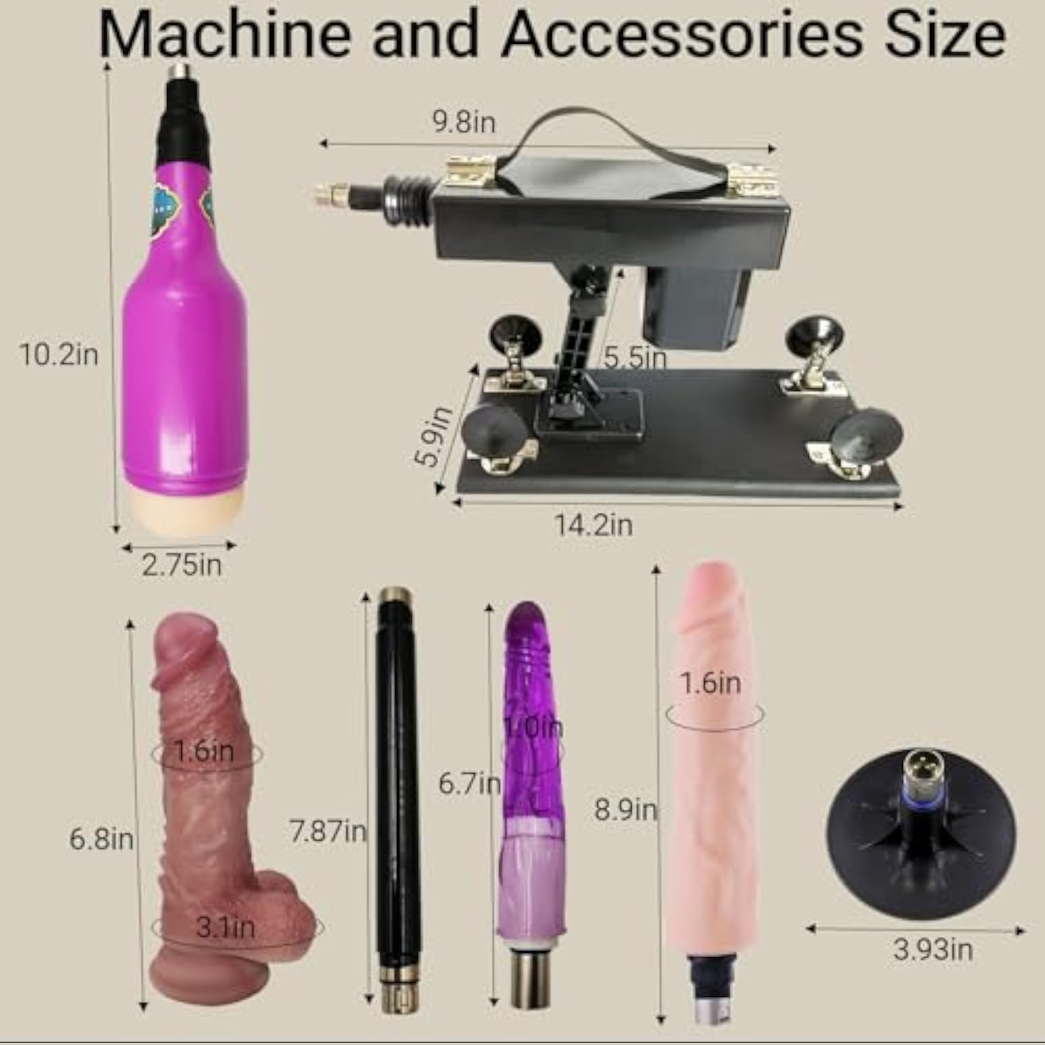 - Realistic Attachments Easy Maintenance: This Dildo Machine Includes Soft And High-Quality Body-Safe Silicone Materials Dildos In Varying Shapes, Sizes, And Textures For Enhanced Stimulation; For Hygiene, Clean Before And After Use With Warm Water, Mild Soap, Or Specialized Intimate Toy Cleansers