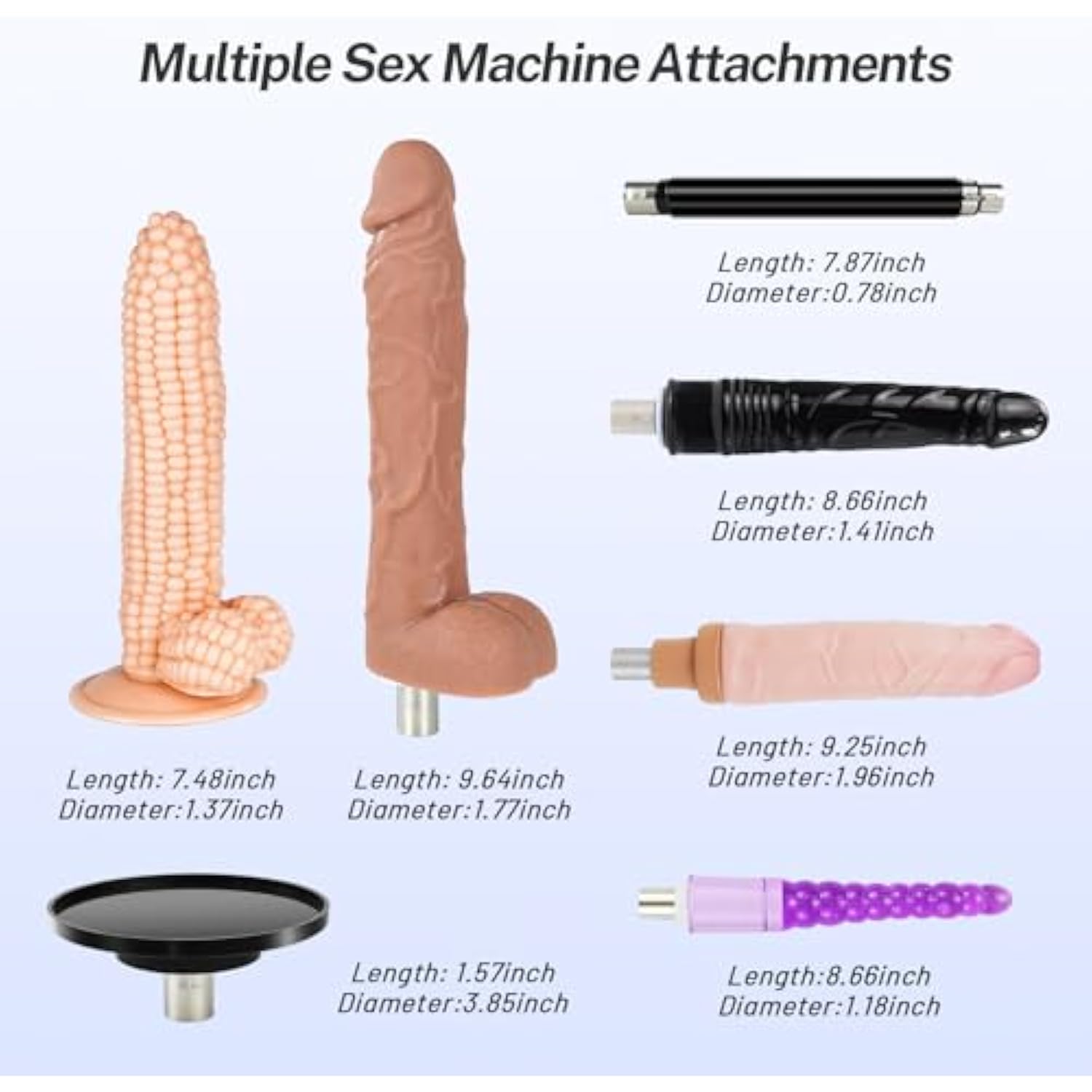- ?Multiple Accessories?The Automatic Sex Machine Comes With 7 Accessories, 5 Of Which Are Dildo Attachments Of Different Sizes, And The Other Is An Extension Rod. Besides That, It Also Comes With A 3.9-Inch Suction Cup Accessory, You Can Use This Suction Cup Accessory When You Want To Use Your Own Suction Cup Dildo.