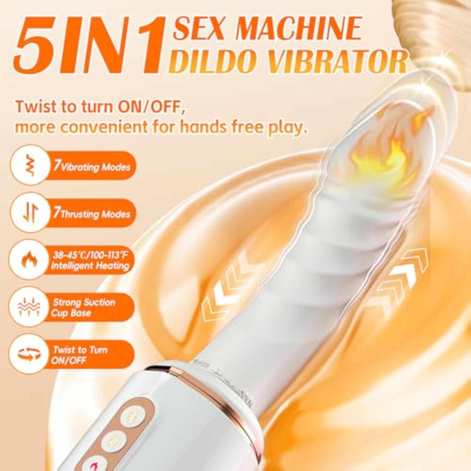 - This Sex Machine, Which Features A Well-Veined 5.5-6.5-Inch Cock In Light Skin Tone, Premium, Safe Silicone, Will Provide You With Triple Stimulation: Vibrating, Thrusting And Warming All At Once For The Sexiest Play Of Your Life. Simply Attach The Suction Base To Your Preferred Level, Sturdy Surface, Then Get On Board! Using The Straightforward Button Controls, Adjust The Warming Function To A Lifelike 38–45°C And Experiment With 3 Penetrating Intensities, 7 Thrusting Patterns, 7 Vibrating Speeds. As An Alternative, You Can Experience Unthinkable Feelings By Controlling Your Speed While Playing With The Rotatable Switch.