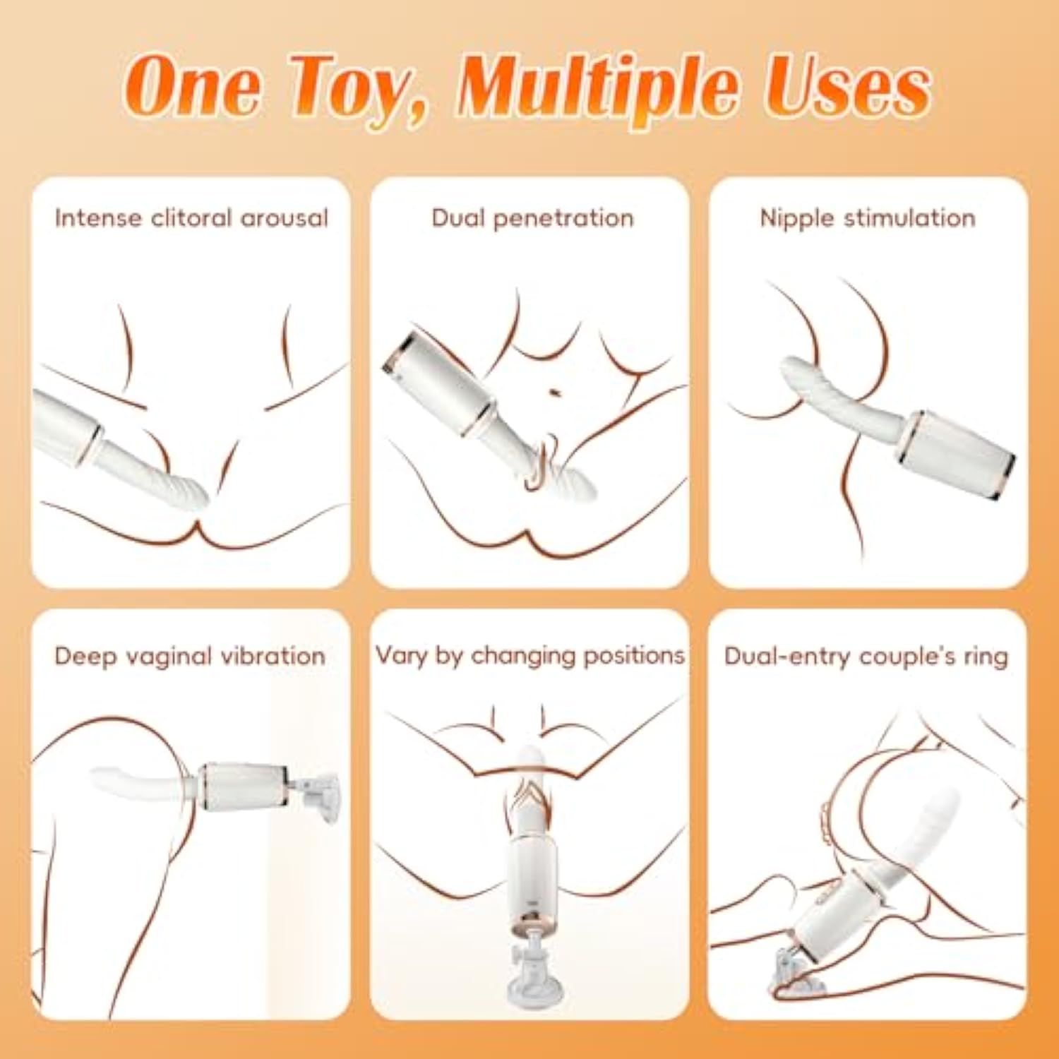 - By Taking Off The Sturdy Suction Cup Base, This Adult Toy Can Be Used As A Thrusting Dildo And Clitoral Vibrator In Addition To An Autonomous Sex Machine. The Versatile Toy Gives You Many Unexpected Options Because It Can Adjust The Angle By 180 Degrees. Lie Down In Comfort For Hands-Off Pleasure As Takes Control. Or Pose The Detachable Suction Cup Mount While You Squat, Kneel, Or Stand Above It For High-Powered Penetration! Just Add A Splash Of Water-Based Lube To Enhance Every Sensation.