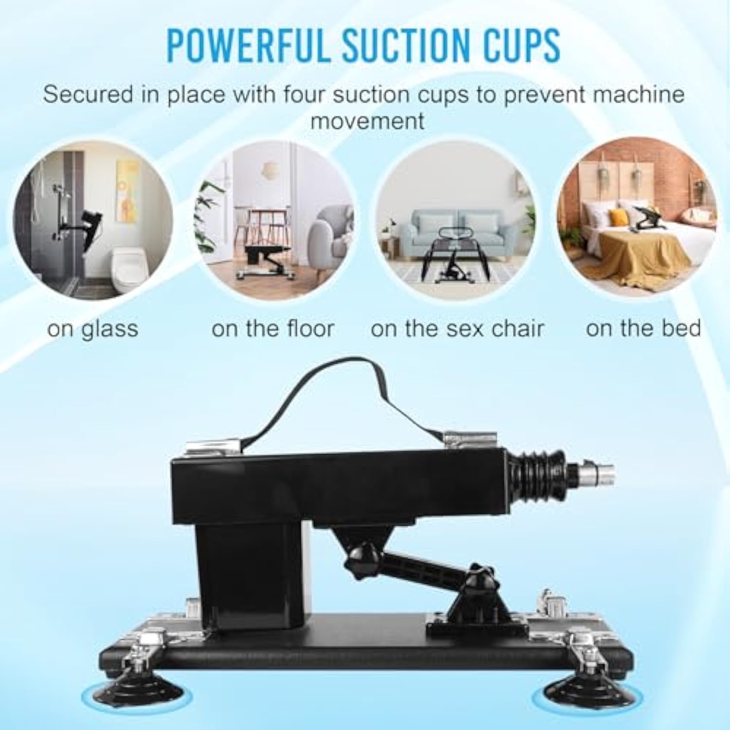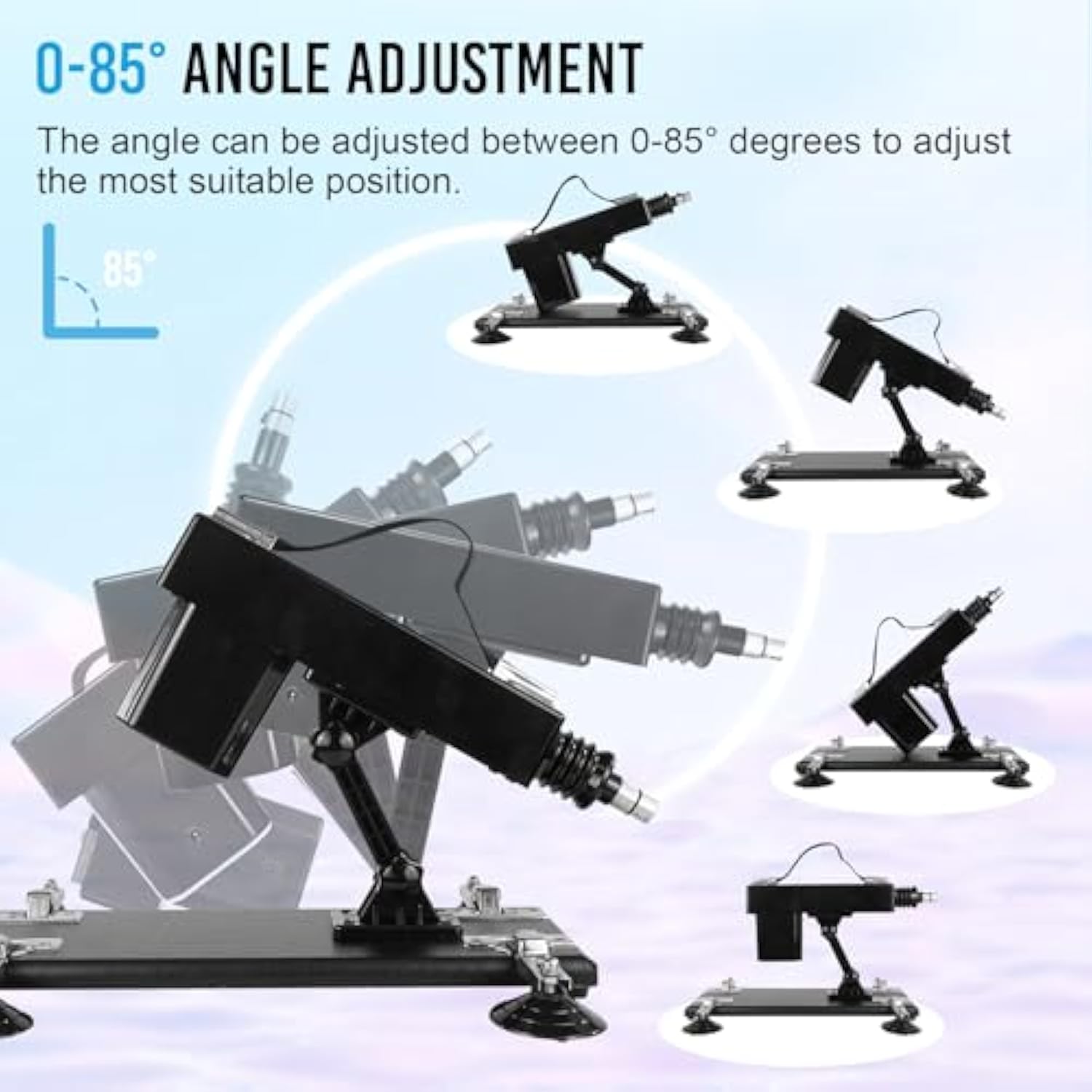| Excellent Experience: The Sex Machine Can Run 0-400 Times/Minute And Adjust The Angle 0-85°. You Can Adjust The Speed And Angle According To Your Preferences. | | Adult Machine: This Adjustable Thrust Sex Machine Can Be Used For Single And Couple Games, Suitable For All Adults. | | Easy To Move: The Portable Love Machine Is Lightweight, Easy To Move, And Can Be Used Anywhere. 4 Suction Cups Can Firmly Adsorb The Machine On Smooth Surfaces Such As Floors Or Tiles. | | Multiple Experiences: Thrusting Dildo Sex Machine Contains 7 Tpyes Accessories, Among Which The Suction Cup Can Be Connected To Suction Cup Dildos With A Diameter Less Than 3.8 Inches, And Additional Suction Cup Dildos Can Be Connected. | | Discreet Packaging: The Packaging Adopts Plain, Neutral Packaging, Which Will Not Reveal Any Sensitive Information, So Others Will Not Know What Is Inside, Avoiding Any Embarrassment. | |
