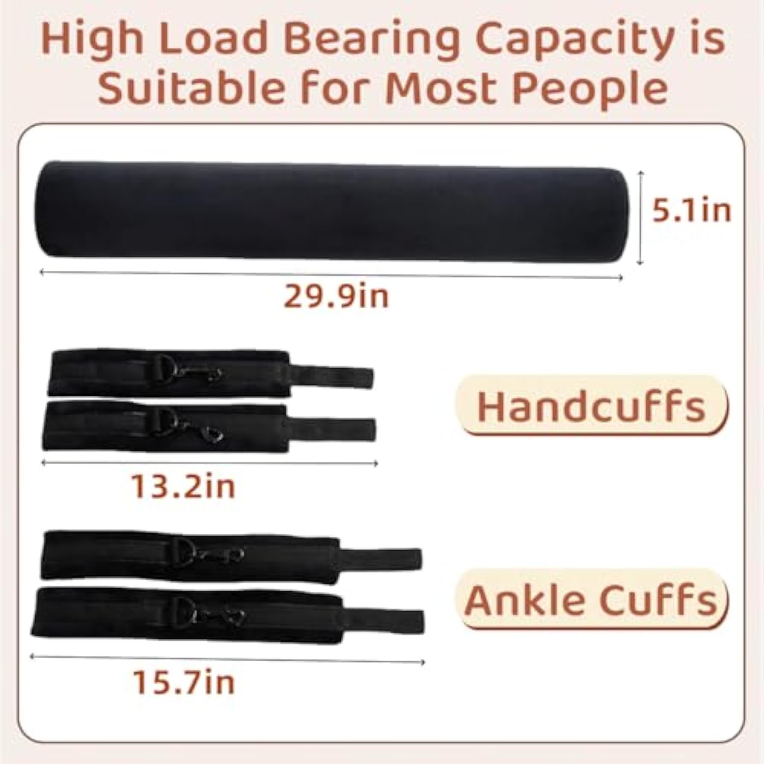 - Bondage Spreader Bar Functionality: Designed With Internal Tubes, The Pillow Doubles As A Spreader Bar. Secure Your Partner’S Wrists And Ankles With The Included Cuffs To Gently Spread The Legs In Various Positions (Lying On The Back, Face Down, Or Elevated ) For Deeper Intimacy. This Setup Holds Your Partner In Place, Letting You Explore Your Desires And Fantasies