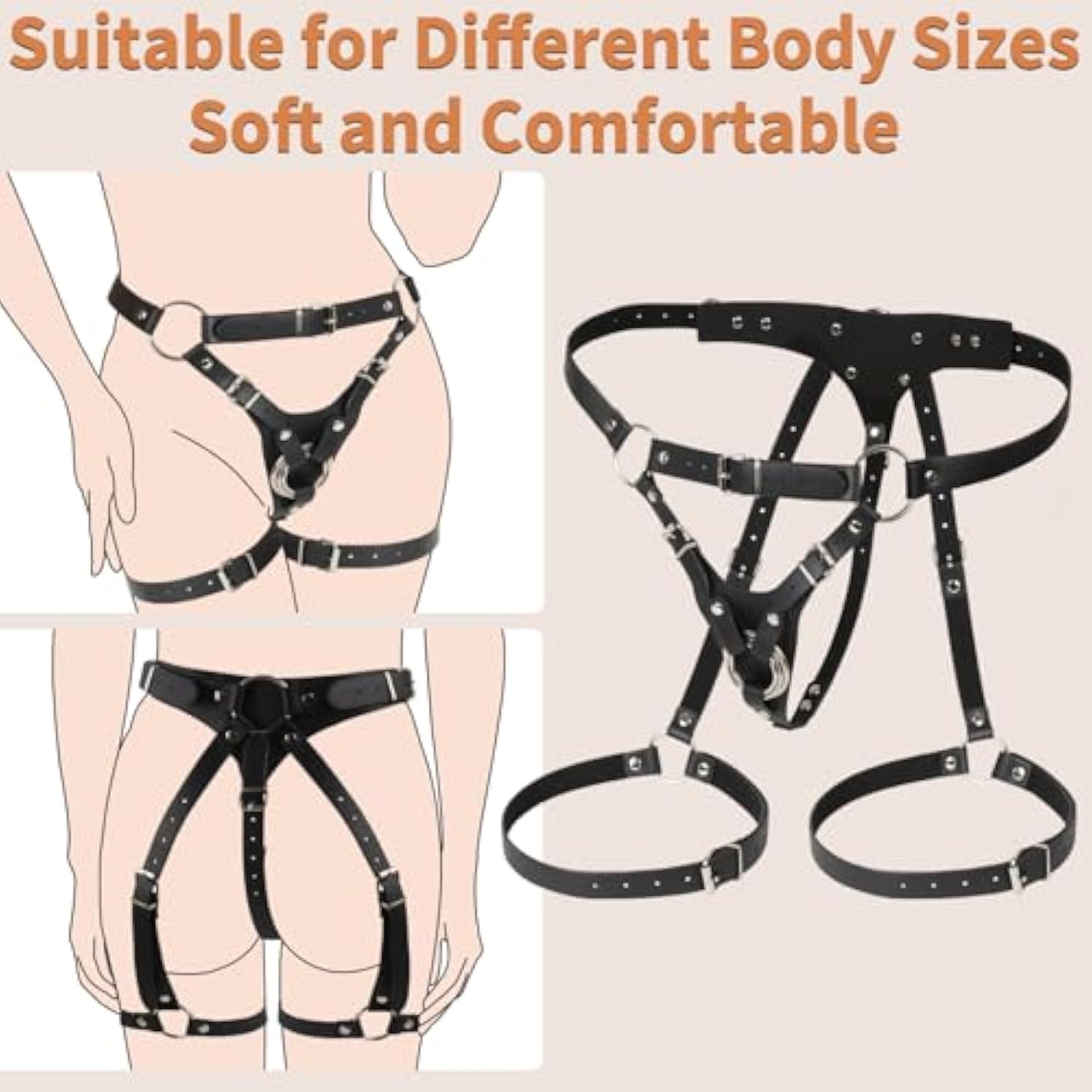 - Fully Adjustable Design: The Size Of This Female Harness Sex Toy Is Easily Adjustable.The Length Of The Strap Can Be Adjusted By Moving The Adjustment Buckles At The Waist, Crotch And Thighs To Make It Fit Perfectly To Various Body Shapes.It Allows You To Fully Enjoy The Pleasure While Highlighting The Curves Of Your Hips