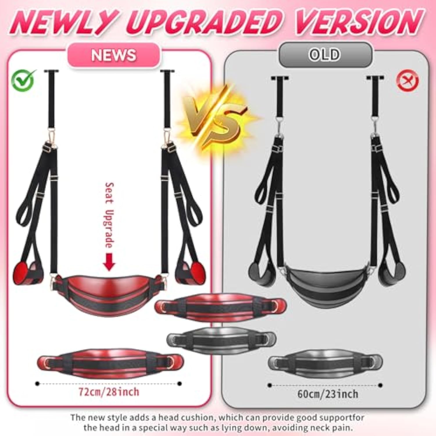 | Upgraded High-Quality Materials: Crafted From Premium Red Pu Leather With A Soft Plush Lining, High-Density Nylon Straps, And Durable Gold Hardware Buckles, This Door Sex Swing Offers Luxurious Comfort And Strong Support. The Widened Seat Cushion Protects Your Wrists, Neck, And Thighs During Intense Bdsm Play, While The Odorless, Anti-Pilling Nylon Ensures Lasting Performance. | | Fully Adjustable For All Body Types: Designed For Versatility, The Adjustable Straps Let You Easily Find The Perfect Position For Bondage, Bdsm Games, Or Sensual Exploration. Heavy-Duty Buckles And Reinforced Stitching Provide A Safer, More Stable Experience With A Weight Limit Up To 500 Lbs. Premium Acrylic Tubes Safeguard Doors From Scratches While Offering Reliable Support. | | Wider Longer Cushion For Extra Comfort: Our Sex Swing Features An Upgraded Cushion Measuring 28 Inches In Length And 6.3 Inches In Width, Compared To The Standard 24 X 4 Inches. The Extended And Widened Seat Provides Better Support And Comfort, Reducing Pressure During Play. Choosing Our Swing Means Choosing A More Enjoyable, Relaxing Experience. | | Versatile 2-In-1 Design:Use It As A Door Sex Swing Or Convert It Into A Thigh Sling For More Bondage Options. The Removable Neck Support Adds Comfort Beneath The Hips, Enhancing Flexibility And Creativity For Different Adult Play Scenarios. Perfect For Both Beginners And Experienced Couples. | | Easy Setup Perfect For Adult Games: Compatible With Most Doors, Installation Is SimpleāJust Place It Over The Door, Close It, And You'Re Ready For Steamy Bdsm Sessions. Whether You'Re Experimenting For The First Time Or Deepening Your Bondage Adventures, This Adult Toy Elevates Intimate Moments For Couples. | |
