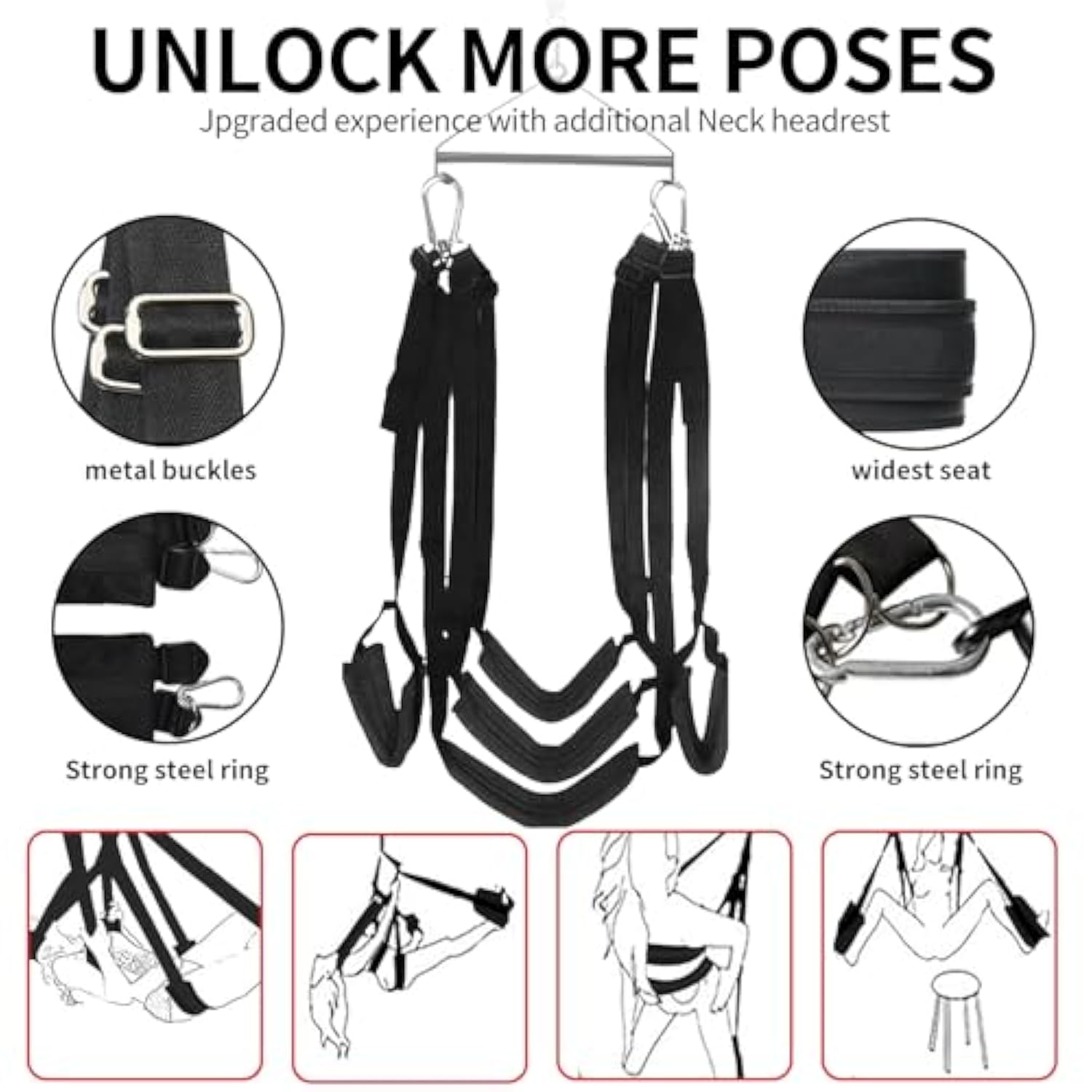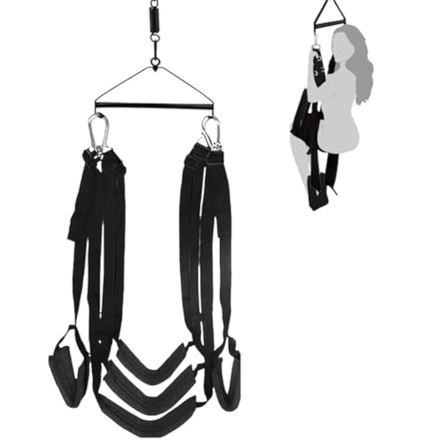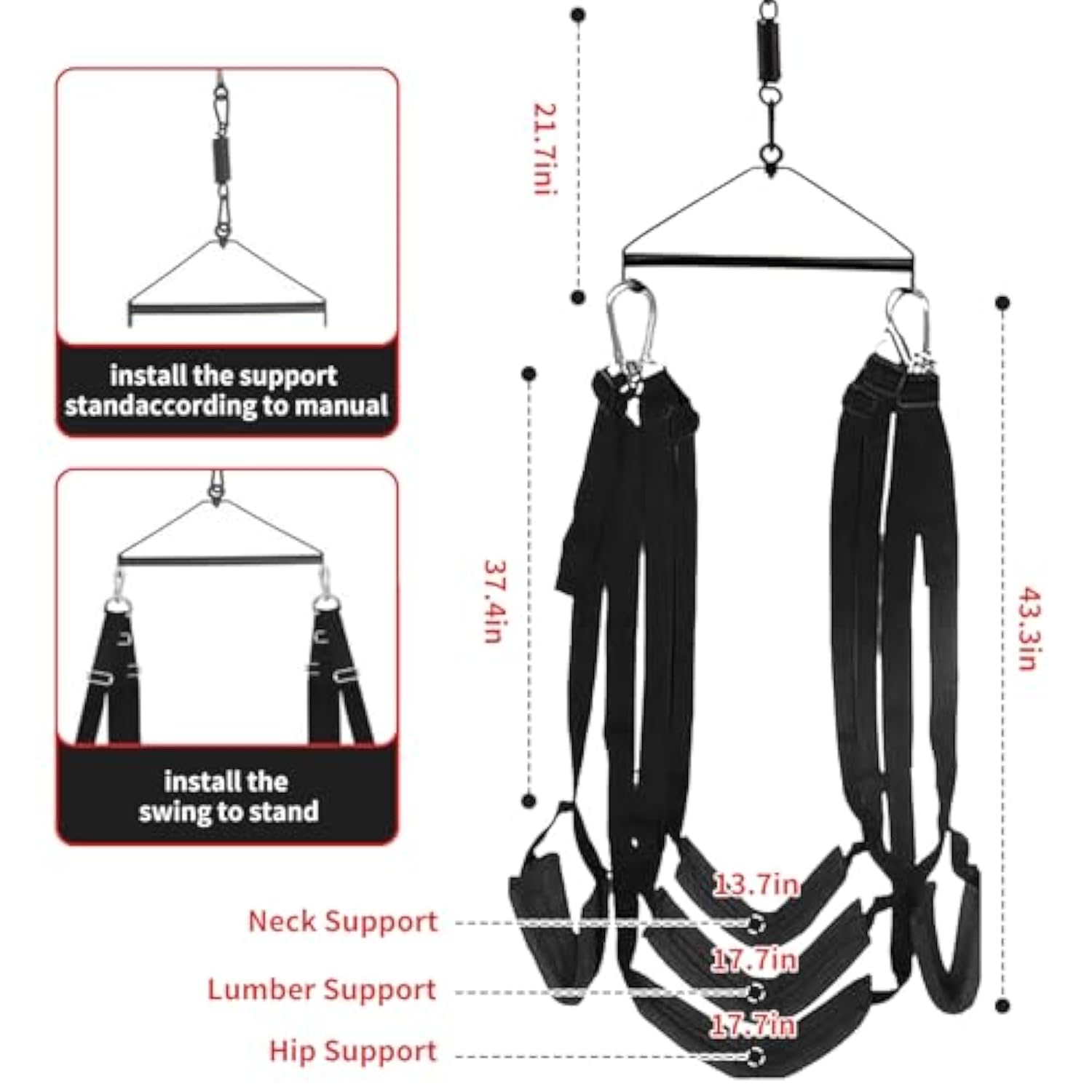 | Newest Design Couples Sex Toys: This 360 Degree Spinning Ceiling Sex Swing Is Designed To Help You And Your Partner Try Some Adventurous And Interesting Fetish Games And Enjoy The Unique Pleasure And Excitement Feeling Of Weightless Sex Like Never Before. | | Fully Adjustable Sex Straps: This Adult Swing Is Perfect For All Body Types, For Each Strap Of The Sex Sling Is Fully Adjustable In Height And Length, Allowing You And Your Partner To Find The Perfect Height And Position For The Seat. Thus Let You Enjoy A Comfortable Feeling When Using The Swing Bondage. | | Safe And Durable Adult Toys: This Bdsm Sex Bondage Swing Kit Is Made Of Soft Pads, Solid Nylon Straps And Sturdy Metal Hanging Apparatus. So This Door Sex Swing Can Hold Up To 350 Pounds, Ensuring You Enjoy Your Swing Sex Games Safely While More Comfortable. | | Easy Installation Sex Furniture For Bedroom:Our Heavy Duty Sex Swings Can Be Easily Set Up And Can Hold Up To 350 Lbs, Allowing You And Your Partner To Switch Back And Forth Love Style Without Any Stress. And You Can Transform It Into A Swing Chair For Your Child'S Play During The Day And Into An Adult Sex Swing For Relaxation In The Evening. | | Unlock More Postures: The Bondage Restraints Will Provide Unlimited Ways To Play. You Can Unlock New Postures And Exciting Sexual Styles, Like Missionary Style, Doggy Style Or Any Oral Sex Positions. This Sex Toy Will Let Your Sexual Adventures Soar To New Heights. | |