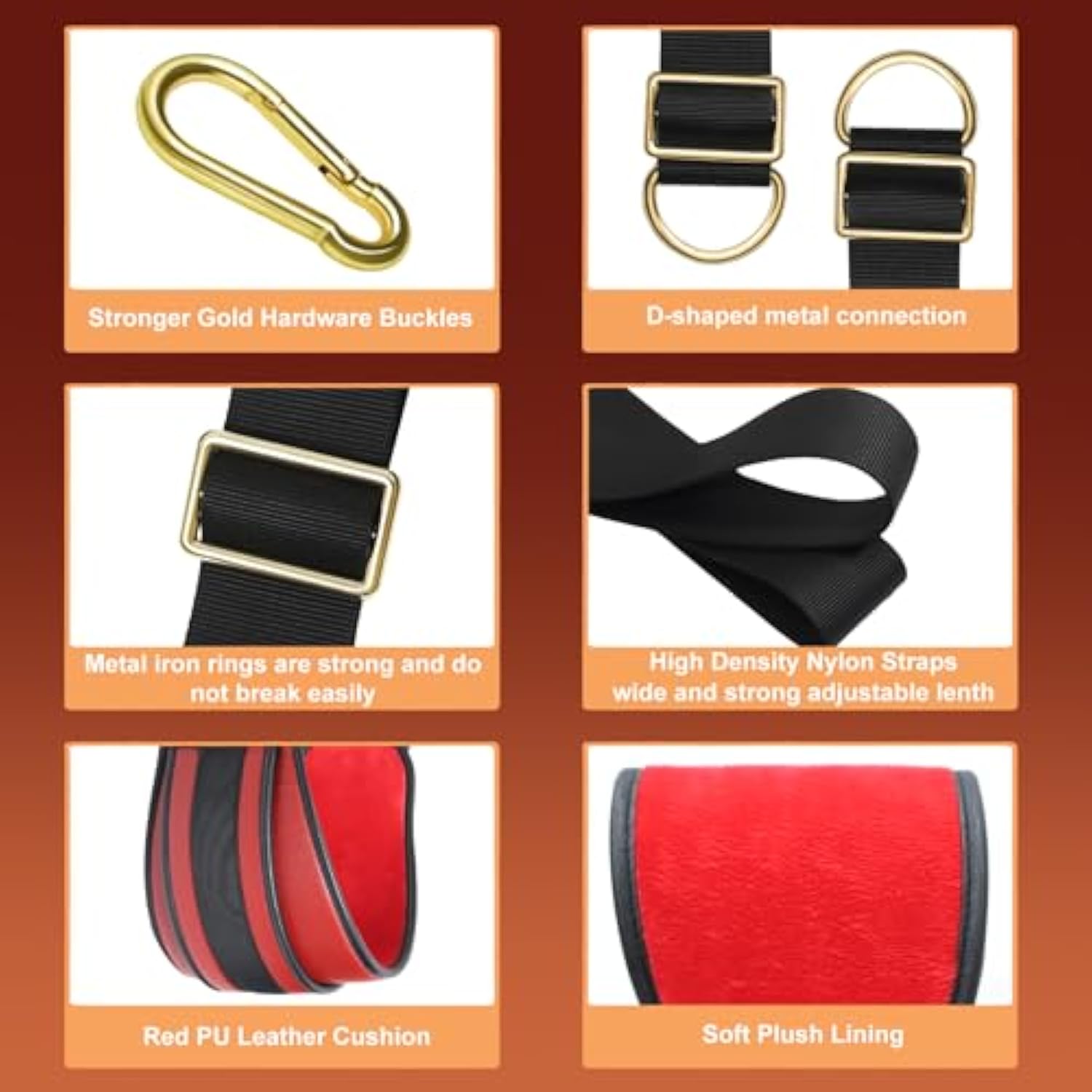 - [Fully Adjustable Designed Safer Experience] The Sex Swing Features Fully Adjustable Straps To Accommo Your Body Types And Preferred Position. Whether You'Re Looking For A More Intense Sm Experience Or A Relaxed, Comfortable Play, The Adjustable Straps Ensure The Perfect Fit Every Time.The Sturdy Gold Hardware Buckles Provide Extra Security.The Premium Acrylic Tubes Are Specifiatr