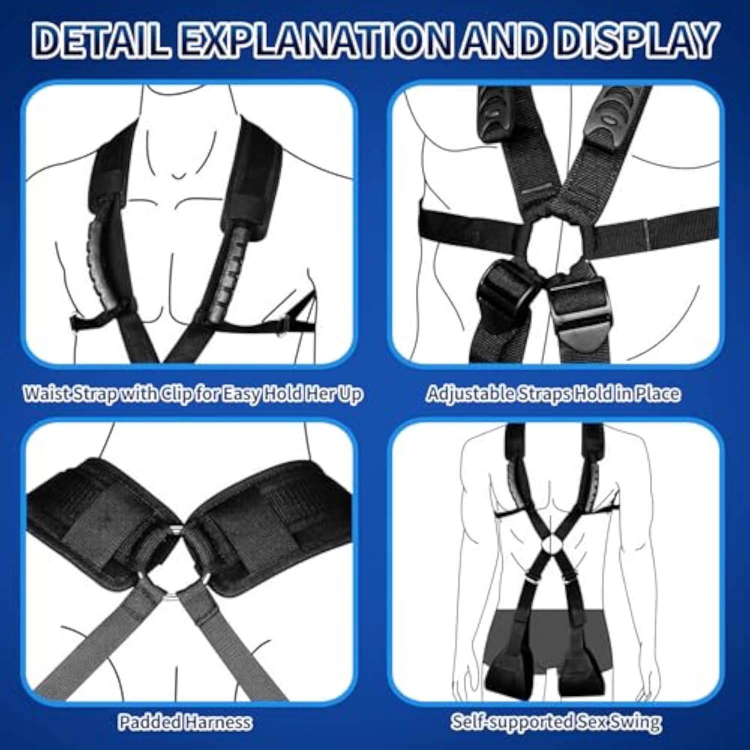 - Transform Your Body Into A Sex Sling: Slip Into The Padded Bdsm Waist Straps And Use It As A Fully Adjustable Sex Swing. This Adult Bondage Toy Is Designed To Help Couples Experiment With New Positions And Enjoy Thrilling, Hands-Free Pleasure.