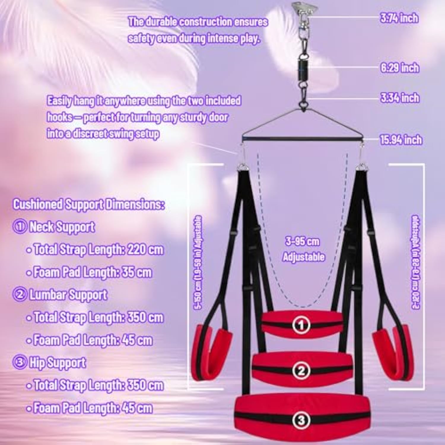 | 1?? Multifunctional Sex Swing For Creative Bedroom Play This Sex Swing Offers Full-Body Support And Hands-Free Pleasure, Allowing Couples To Explore New Angles, Deeper Intimacy, And Weightless Sensations. Ideal For Enhancing Your Bedroom Adventures Or Spicing Up Your Routine. | | 2?? Triangular Suspension System For Enhanced Stability Features A Triangular Hanging Design That Distributes Weight Evenly And Increases Safety. Designed To Be Suspended From A Solid Ceiling Hook, Sex Furniture Stand, Or Reinforced Frame (Not Door-Mounted). | | 3?? Detachable Bdsm Restraints For Versatile Bondage Play Includes Removable Ankle Cuffs, Wrist Cuffs, And A Supportive Neck Strap, Letting You Easily Switch Between Romantic Intimacy And Thrilling Restraint Play. A Perfect Introduction To Soft Bondage Or Advanced Bdsm Sessions. | | 4?? Extra-Wide Cushions For Maximum Comfort Soft Padded Supports Cradle The Neck, Back, And Hips During Use. Adjustable Straps Accommodate All Body Types And Allow You To Control Height And Positioning For Various Erotic Positions With Ease. | | 5?? Discreet Romantic Gift For Couples Arrives In A Private, Unmarked Box. A Great Surprise For Anniversaries, Valentine’S Day, Or Whenever You'Re In The Mood To Try Something Adventurous Together. Fun, Functional, And Unforgettable. | |