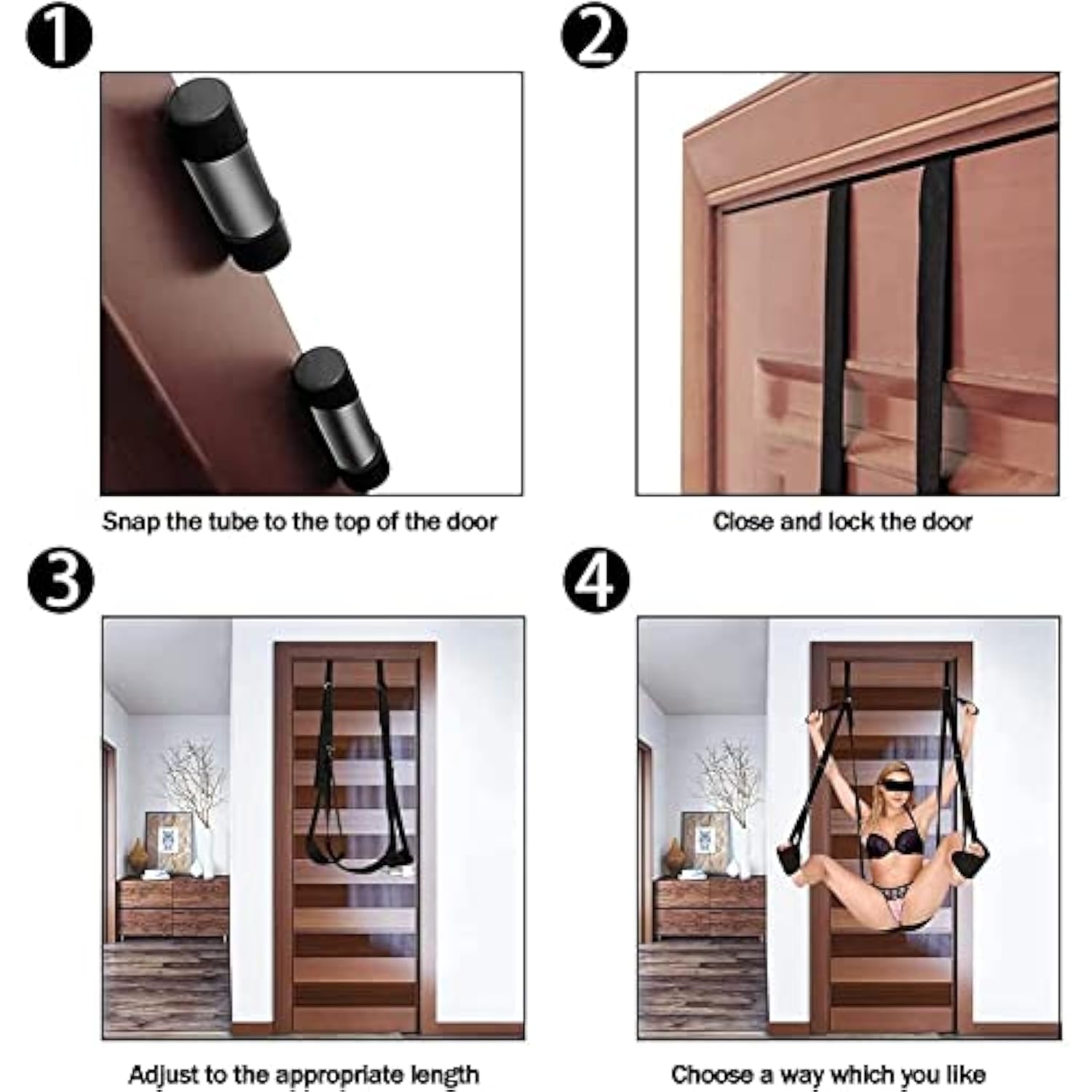 - Fun Sex Body Positioner: It'S Easy To Install With Just One Door, No Additional Fixtures Or Drilling Required, Place A Section Of Acrylic Tube Over The Door To Secure And Close, Hang The Restraint Straps In Place And Adjust To The Perfect Angle, Lock The Door And Let Your Partner Sits On The Seat Cushion, Passes Their Legs Through The Thigh Ring Cushion, Grabs The Handcuff Rings With Both Hands, And Is Ready To Use. When The Sex Play Is Over, Simply Open The Door And Lower The Door Sex Swing. Use With An Eye Mask To Completely Immerse Your Partner In Darkness, Enhancing Sensation And Excitement. You Can Also Use Whips, Gag Or Other Adult Toys To Bring A Different Sexual Experience