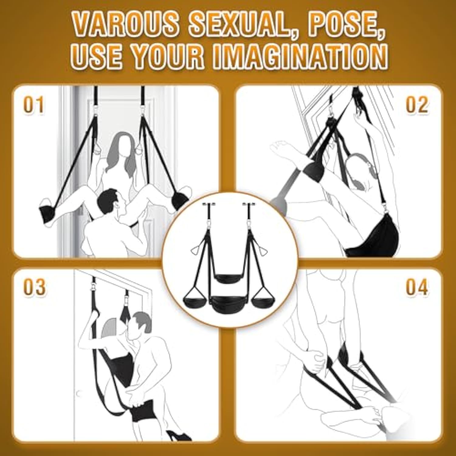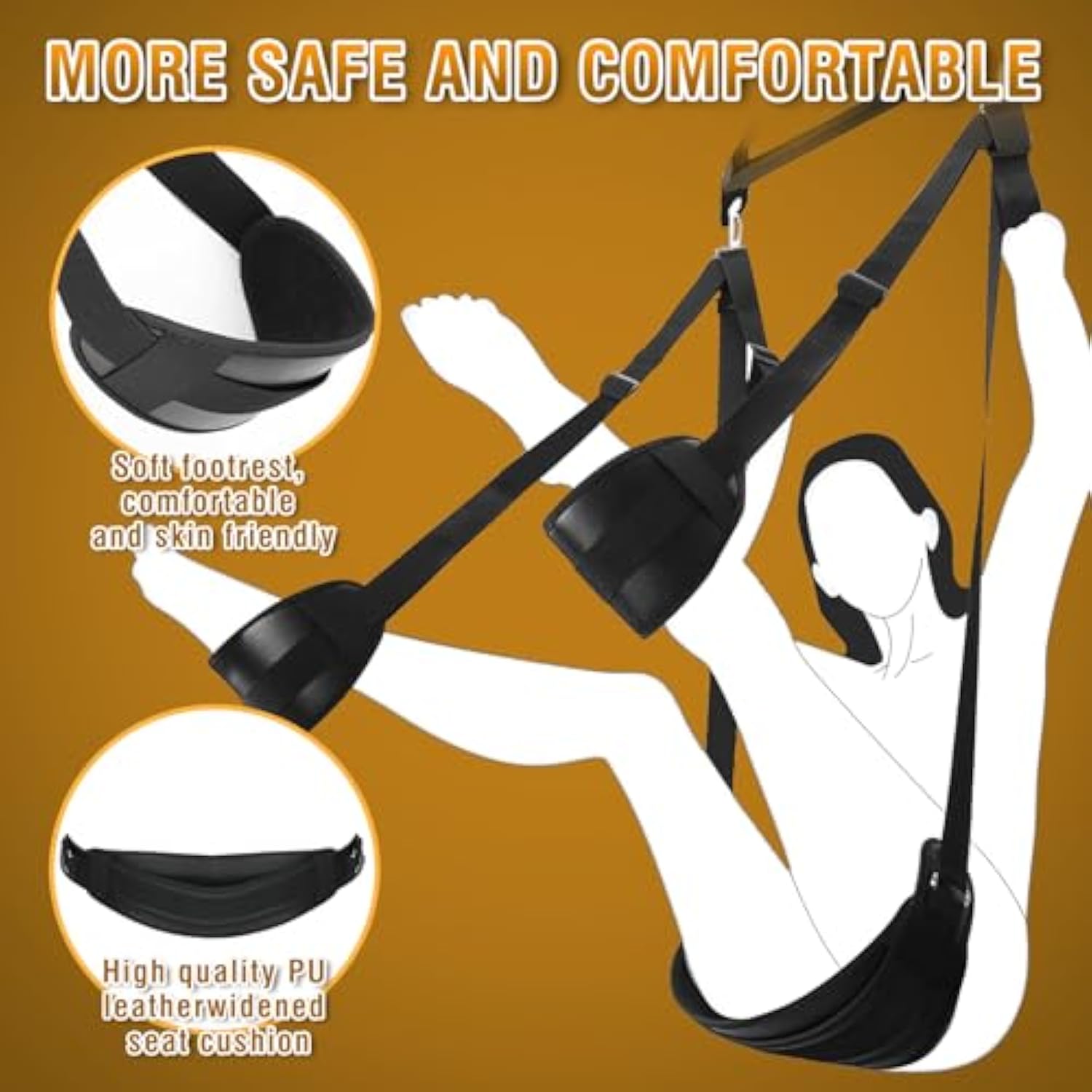 | Unleash Your Fantasies: The Bdsm Door Sex Swing Allows Your Erotic Imagination To Run Wild, Making It Easier Than Ever To Explore Exciting New Positions. Experience Intimacy Like Never Before With This Versatile Sex Sling Designed For Ultimate Pleasure In Your Adult Toys Collection. | | Durable High-Grade Materials: Made With High-Grade Leather Straps, This Sex Swing Is Built To Last. The Sturdy Construction Ensures Durability While The Wide Seat And Foot Pads Provide Maximum Comfort During Your Swinging Adventures With Bondage Gear Accessories. | | No Installation Required: Enjoy Immediate Fun With Our Sex Toys—No Installation Necessary! Simply Place The Tubes Over A Door And Close It To Start Enjoying Your New Favorite Adult Toy, Making It Convenient And Easy To Use For Spontaneous Moments. | | Upgraded 2 Cushions: This Swing Comes With Upgraded 2 Cushions That Provide Exceptional Support During Use, Enhancing Your Comfort. The Soft Plush Material Ensures That You Can Enjoy Long Sessions Of Pleasure Without Discomfort, Making It Perfect For Those Intimate Moments With Your Partner. | | Great Gift For Couples: This Door Sex Swing Makes A Fantastic Gift For Your Partner, Adding Excitement And Adventure To Your Intimate Life. Perfect For Anniversaries, Birthdays, Or Just Because—Surprise Your Loved One With This Thrilling Addition To Your Bondage Set And Adult Sex Toys Collection! | |
