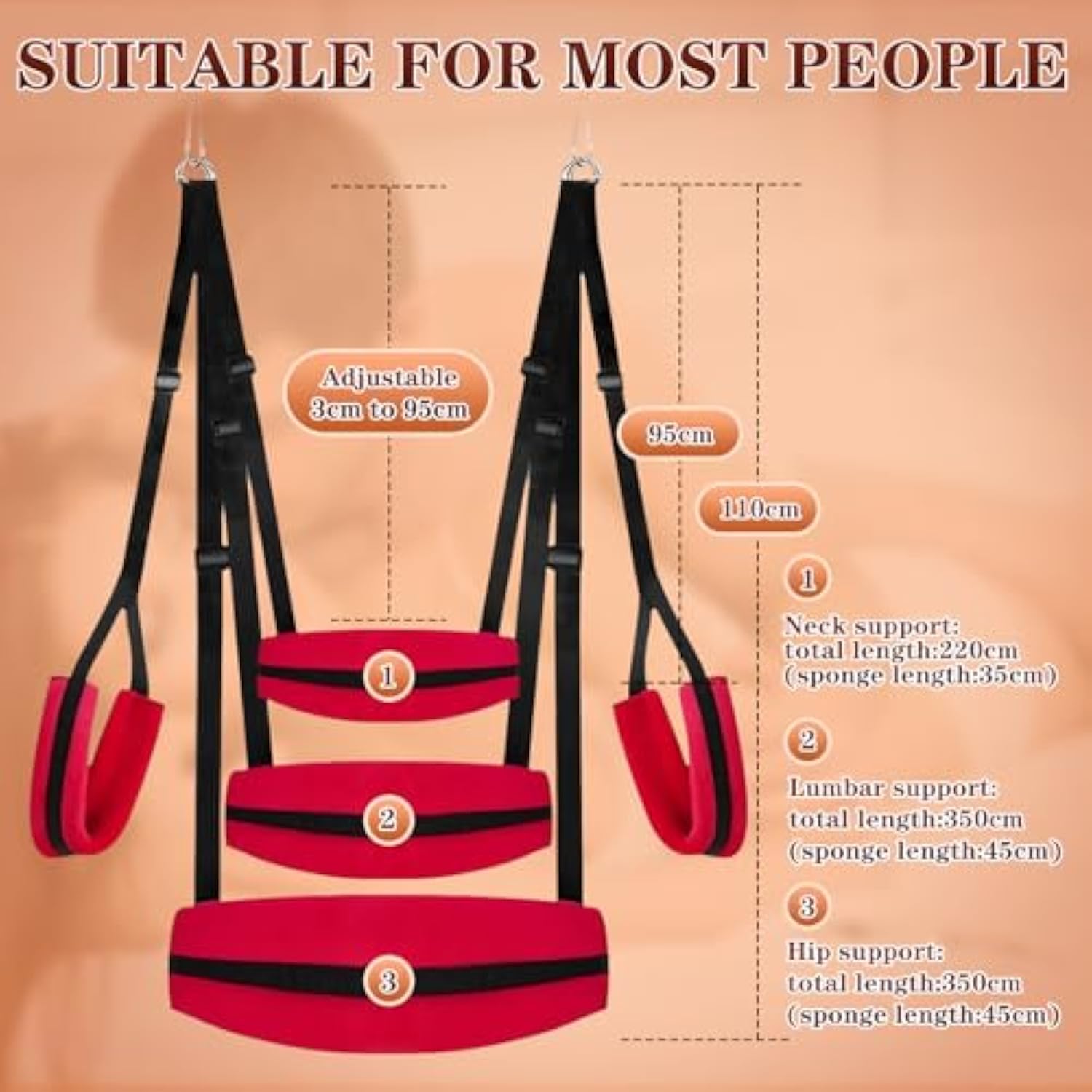 Sex Swing Sex Toys For Couples, Ceiling & Door Sex Swings With Widened Neck Lumbar Hip Pads & Adjustable Sex Straps, Bdsm Bondage Restraints Sex Toy Adult Toys For Sex Game, Holds Up To 300 Lbs, Red