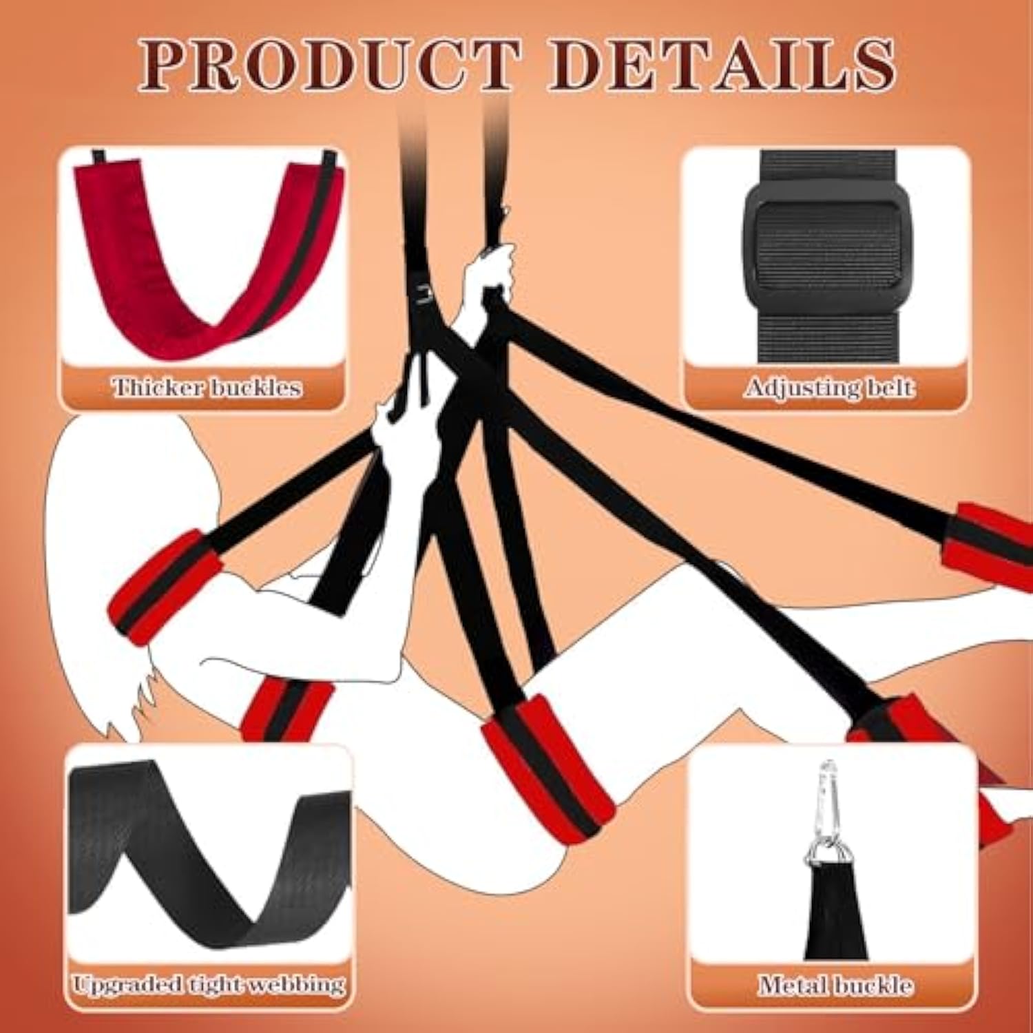 Dual-Use Design – Ceiling Door Sex Swing Options: This Versatile Sex Swings Can Be Securely Installed On The Ceiling For A Full Range Of Motion Or Easily Mounted On The Door For Quick And Spontaneous Fun. Enjoy Limitless Pleasure In Any Setting With This Hanging Sex Swing Sex Toy. Perfect Sex Toys For Couples | | Heavy-Duty Premium Materials Bdsm Sex Toy: Made From High-Quality Leather And Durable Nylon Sex Straps, This Bondage Swing Adult Toys Is Built To Withstand Intense Play In Sex Game While Providing A Comfortable And Secure Experience For All Body Types | | Fully Adjustable Straps Adult Sex Toys: Designed For Ultimate Comfort, The Adjustable Sex Sling Couples Sex Toys Allow You To Find The Perfect Height And Position. Whether Exploring New Positions Or Enhancing Intimate Moments, This Sex Swing Bdsm Kit Adapts To Your Needs | | Soft Padded Seat Door Sex Swing: Featuring Cushioned Thigh And Neck Supports, The Sex Swings Couple Sex Toys Ensure Ultimate Comfort For Extended Sessions. The Extra-Soft Padding Of The Bdsm Toys Eliminate Discomfort, So You Can Fully Immerse Yourself In Pleasure During Your Bondage Restraints Swing Experience | | Perfect Romantic Gift For Couples: Whether You’Re Looking To Explore New Levels Of Intimacy Or Surprise Your Partner With Something Sex Novelties Exciting, This Sex Swing Makes An Unforgettable Romantic Gift. Designed For Couples Who Want To Add Passion And Adventure To Their Love Life, Perfect As Sex Furniture For Bedroom Or Anywhere | |