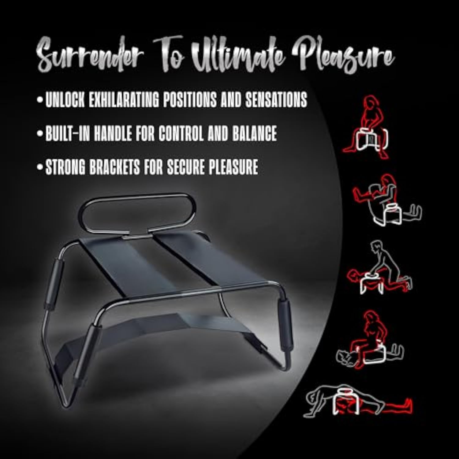 Sex Toys – Temptasia Surrender Sex Chair – Bdsm Bondage Furniture For Bedroom – Adjustable Sex Position Stool With Bouncing Seat & Strong Brackets – Kinky Sex Toy For Couples’ – Black