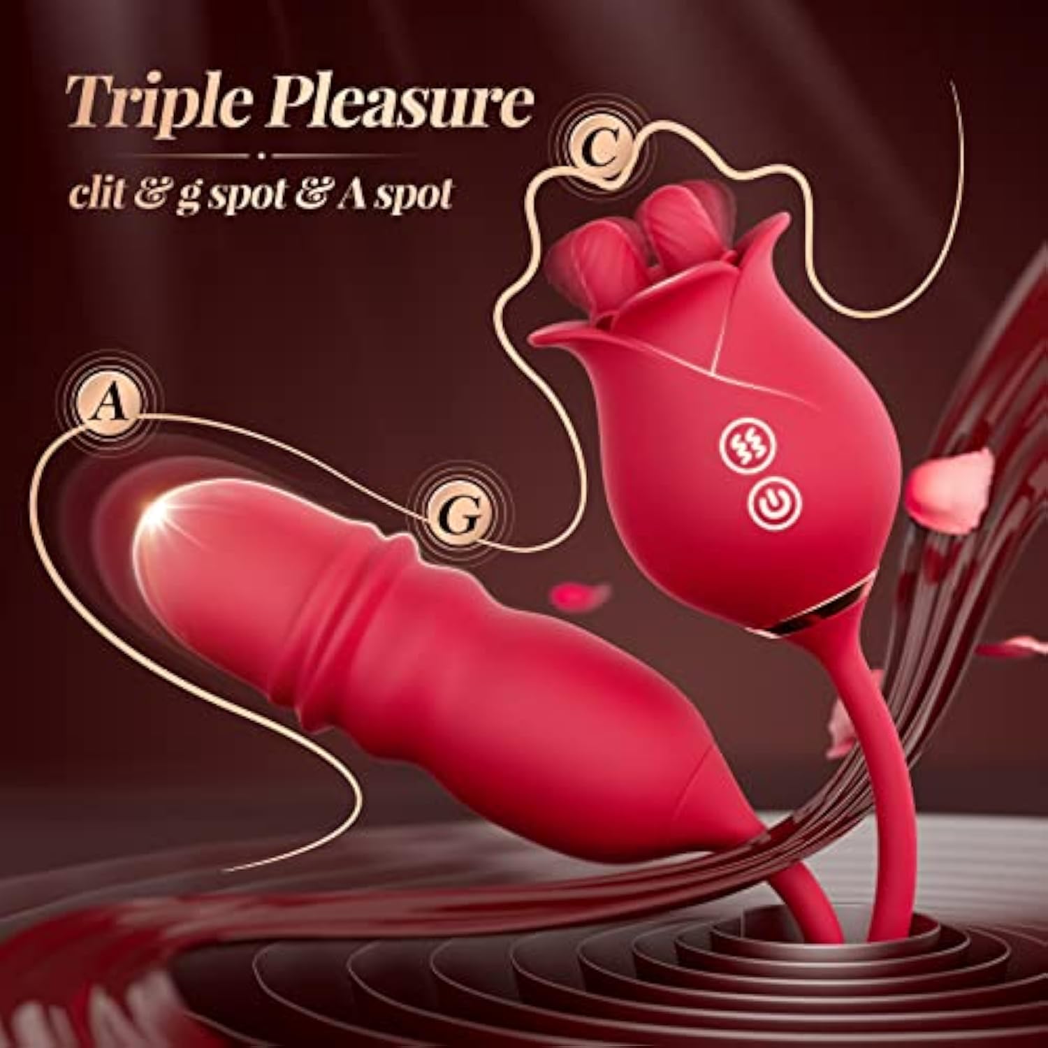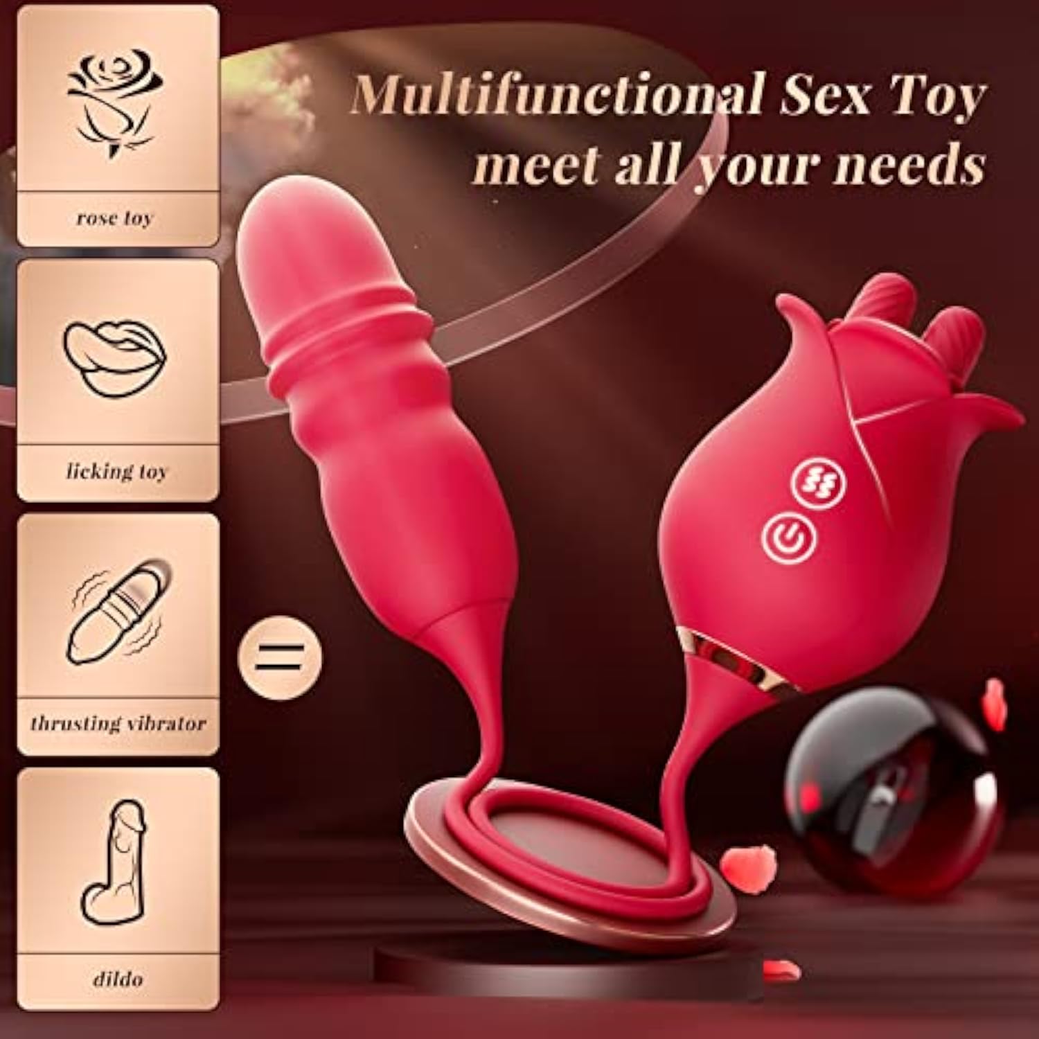 - The 3In1 Upgraded Adult Sex Toys Are More Worthy -If Your Sex Toy Collection Contains Only Single-Function Rose Vibrator, Dildos Or G Spot Vibrator, Then You Definitely Like Our 3In1 Adult Toys. Because We Specially Designed The Functions Of Licking, Thrusting And Vibration For The Rose Vibratos To Provide Triple Stimulation For Women. The 3 Functions Can Be Easily Controlled By 2 Buttons, One For Clitoral Or Nipple Licking Vibration, And Other One For Thrusting Vibration For G Spot Or Anal. Dildos For Women