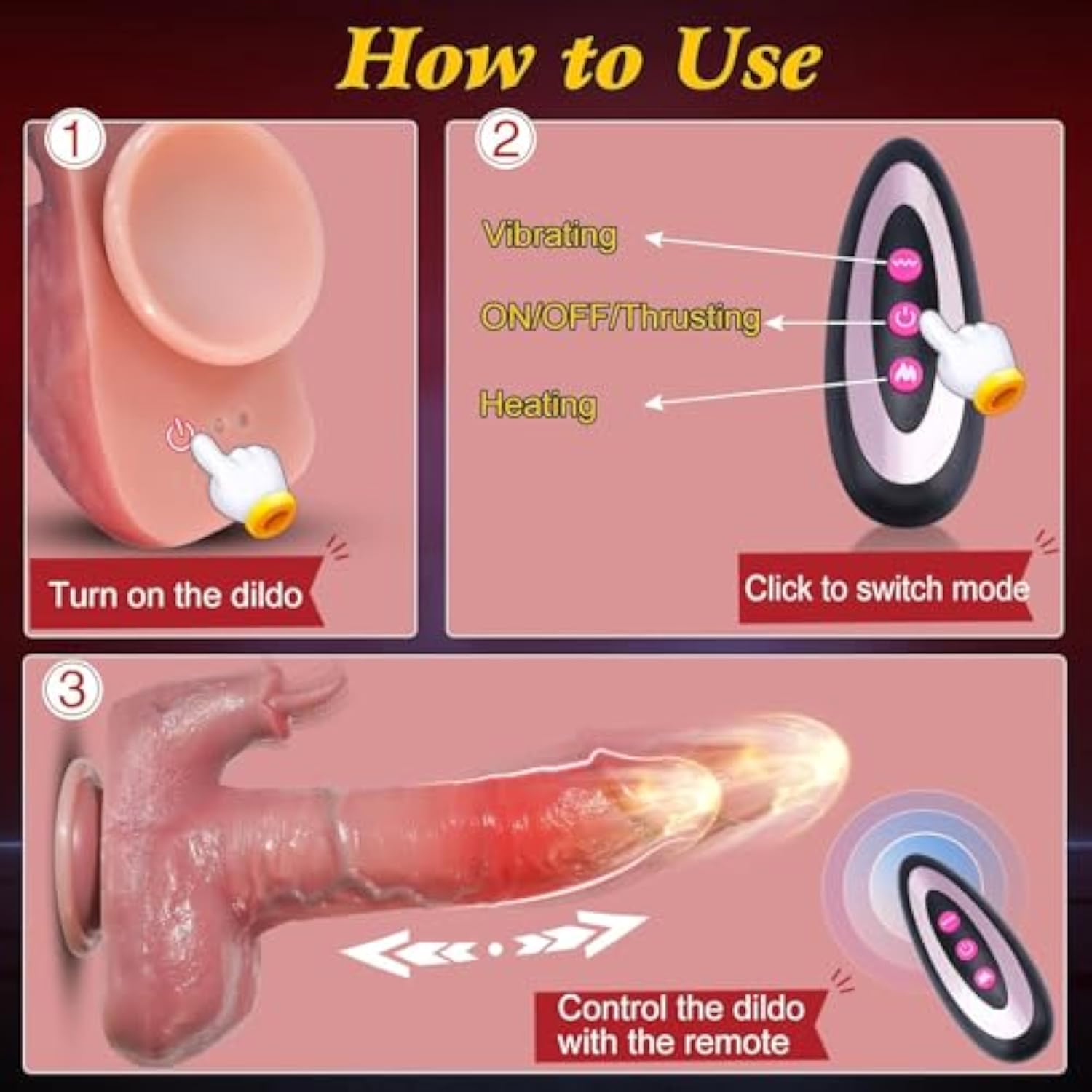 - ? Multifunctional Stimulation Sex Toy?This Realistic Dildos Has 3 Thrusting Modes, 9 Vibrating Modes And Heating Function. Thrusting Modes Can Extend The Length Of The Penis, Thrusting Deep In The Vagina, Explore And Hit Your Sensitive Points. Vibrating Modes Can Stimulate The G-Spot, Vagina, Anal, Prostate Or Other Erogenous Zones With A High Frequency, Making It Easier For You To Reach Orgasm. Meantime, The Unique Soft Mini Tongue Will Stimulate The Clitoris To Bring You A Double Real Sexual Feeling. Each Function Is Controlled By One Individual Button, But You Can Freely Combine Them To Meet Your Various Needs.