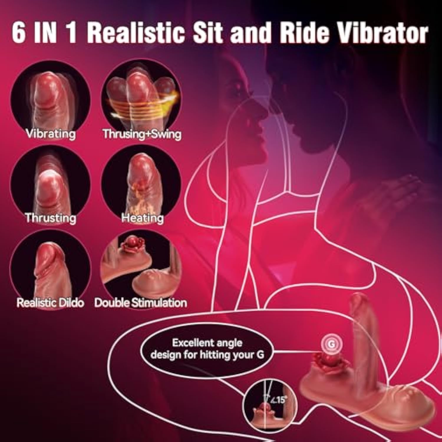 | Sit And Ride Vibrators With 7 Thrusting Dildo Modes And 10 Vibration Settings - Indulge In Deeply Satisfying Pleasure With This All-In-One Sex Toy Designed For Versatility, Power, And Comfort. Featuring A Realistic Dildo With 7 Thrusting Dildo Modes And 10 Vibration Settings, This Sex Toys For Women And Special Angle Design Rose Vibrator Delivers Intense Precise Stimulate G-Spot Anal Clit Stimulation. Crafted From Super Soft Huge Dildo, It Mimics The Feel Of A Real Skin Dildo, While The Remote Control Vibrator Allows Hands-Free Play For Solo Sessions Or Partnered Or Couples Sex Toys Fun. | | Adjustable Elastic Buckles And Straps - This Powerful Strap On Dildo Includes An Adjustable Elastic Buckles And Straps Can Strap On Pillow, Chair, Towel And So On For Enhanced Comfort And Stability, Making It Perfect For Couples Sex Toys, Lesbian, Or Gay Sex Toys. Its Big Dildo Shape With A Thick Dildo Girth Is Ideal For Deep Penetration And Intense Internal Massage. Whether You'Re Into Anal Sex Toys, Anal Dildo, Or Want To Explore The Thrill Of A Wearable Vibrators, This Toy Adapts To Your Desires. | | Adult Sex Toys With Heating Function - This Adult Sex Toys Games Offers Lifelike Textures With Soft Silicone Material And A Unique Heating Function That Warms Up To 40°C, Mimicking Body Temperature For More Immersive Pleasure. | | Super Soft Material Silicone - Its Silicone Dildo Body Ensures It'S Safe, Body-Friendly, And Easy To Clean. Add Excitement To Your Collection With A Monster Dildo, Vibrator For Women, Or Vibrating Dildo Design – Perfect For Those Seeking Fullness And Realism. The Remote Vibrator Feature Also Makes It A Great Thrusting Vibrator And A Must-Have In Fantasy Dildo Collections. | | Rechargeable, Waterproof, Whisper-Quiet - This G Spot Vibrator Is Discreetly Packaged And Ideal For Use At Home Or While Traveling. Whether You’Re Searching For A Female Sex Toys, Penis Vibrator, Dildo For Women, Or A Large Dildo, This Toy Promises Unforgettable Pleasure. | |